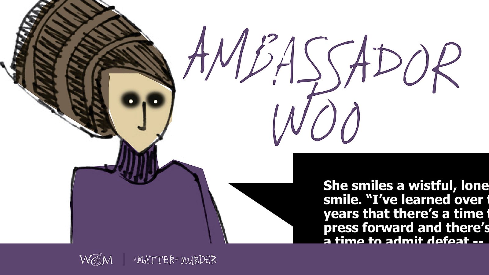 Featuring 6 Suspects: Ambassador Woo, Lord Plaidington, Diva LaVoix, Madam Dreary, Lieutenant Stoutheart, and Major Thomas.