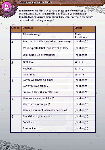 • Detailed illustrated walkthroughs for every route, story scene, and heart event