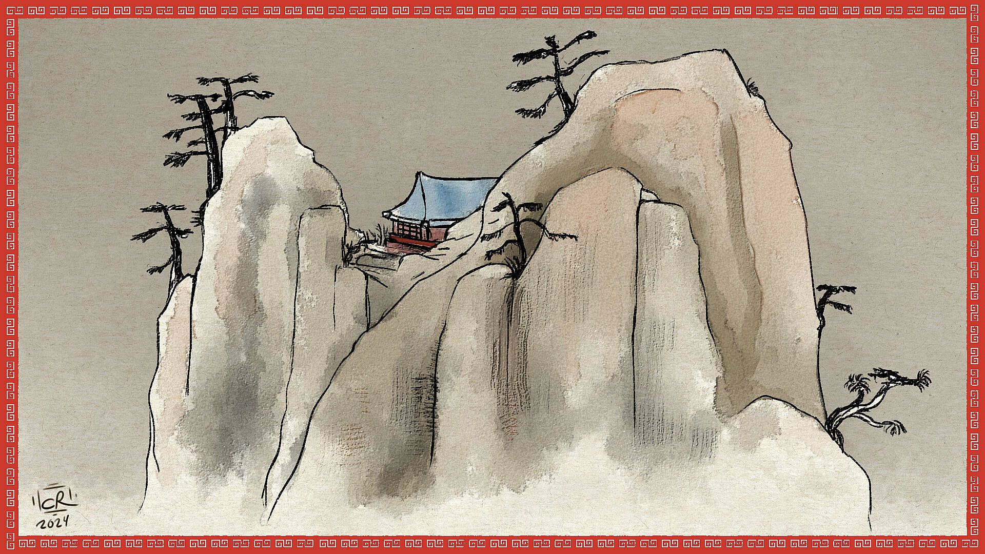 Drawing from traditional Chinese watercolor and the concept of floating islands, "The Sea of Clouds" features art of mountainous environments, combined with touches very reminiscent of Asian culture to remind the player where they are at all times. All the backgrounds have been made on a traditional writing paper texture, to reinforce the entire Asian concept and accentuate it at all times.