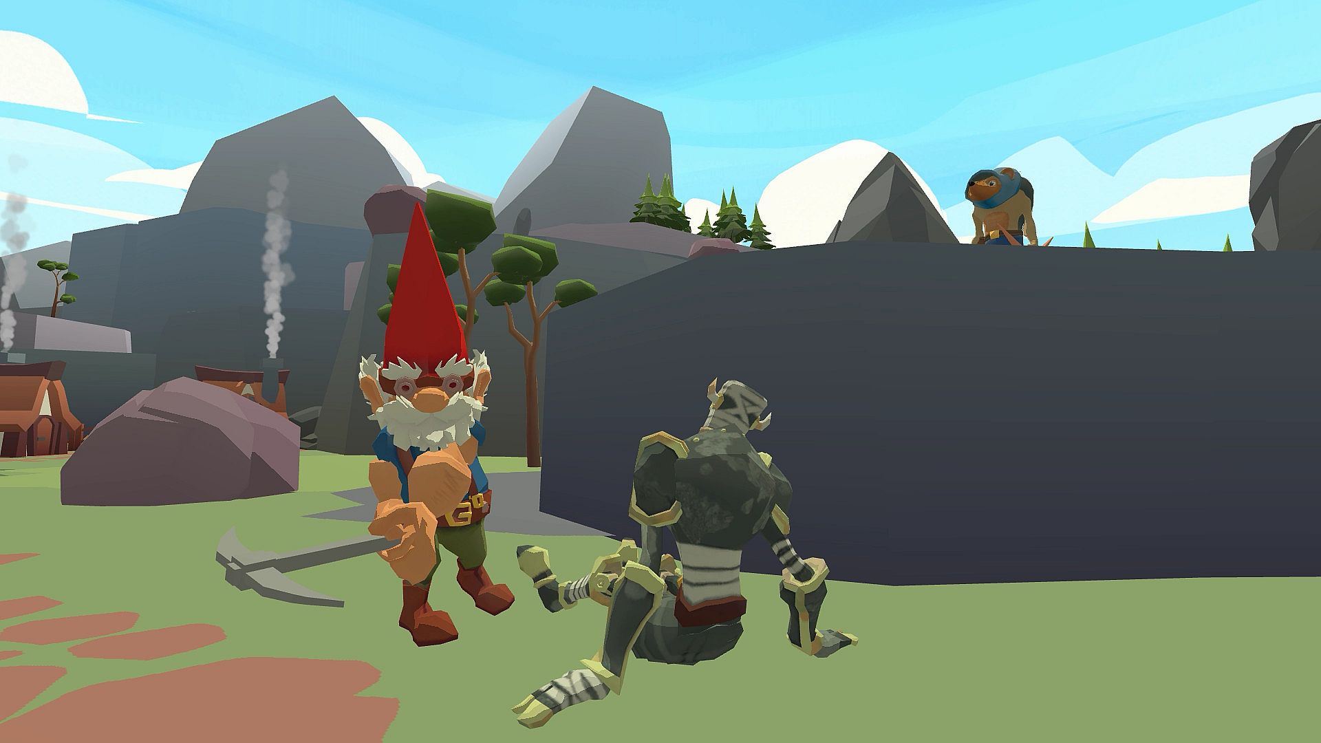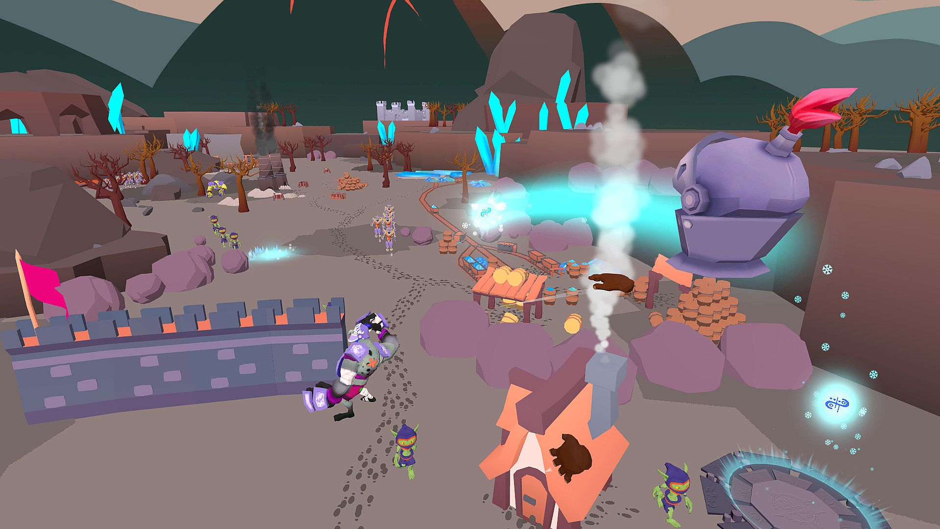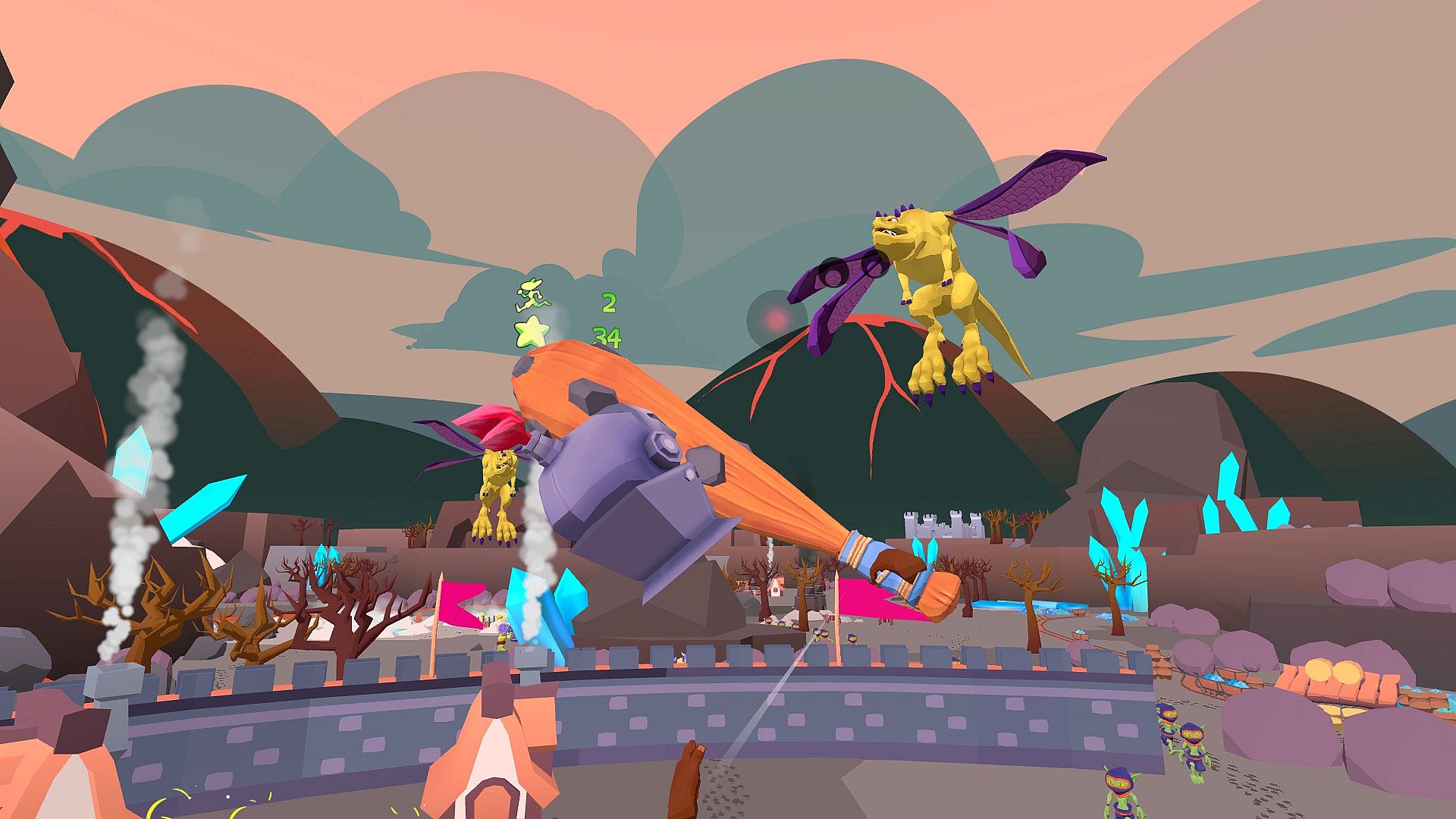 Invaders threaten your peaceful village, forcing you to defend it as a towering giant. Smash enemies with your fists or hurl buildings and objects to repel the hordes. Command villagers for counter-attacks, repair defenses, and station troops along the walls in this VR action strategy adventure. Wield ancient magics like fire, ice, and shadow, combining them with your giant strength to protect gold and lives. Hold the line against the king's forces until everyone reaches safety. Early access players command the chaos on PC with HTC Vive, Oculus Rift, Rift S, and soon Valve Index support.