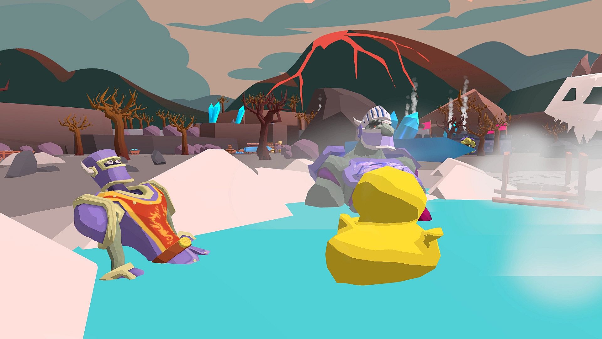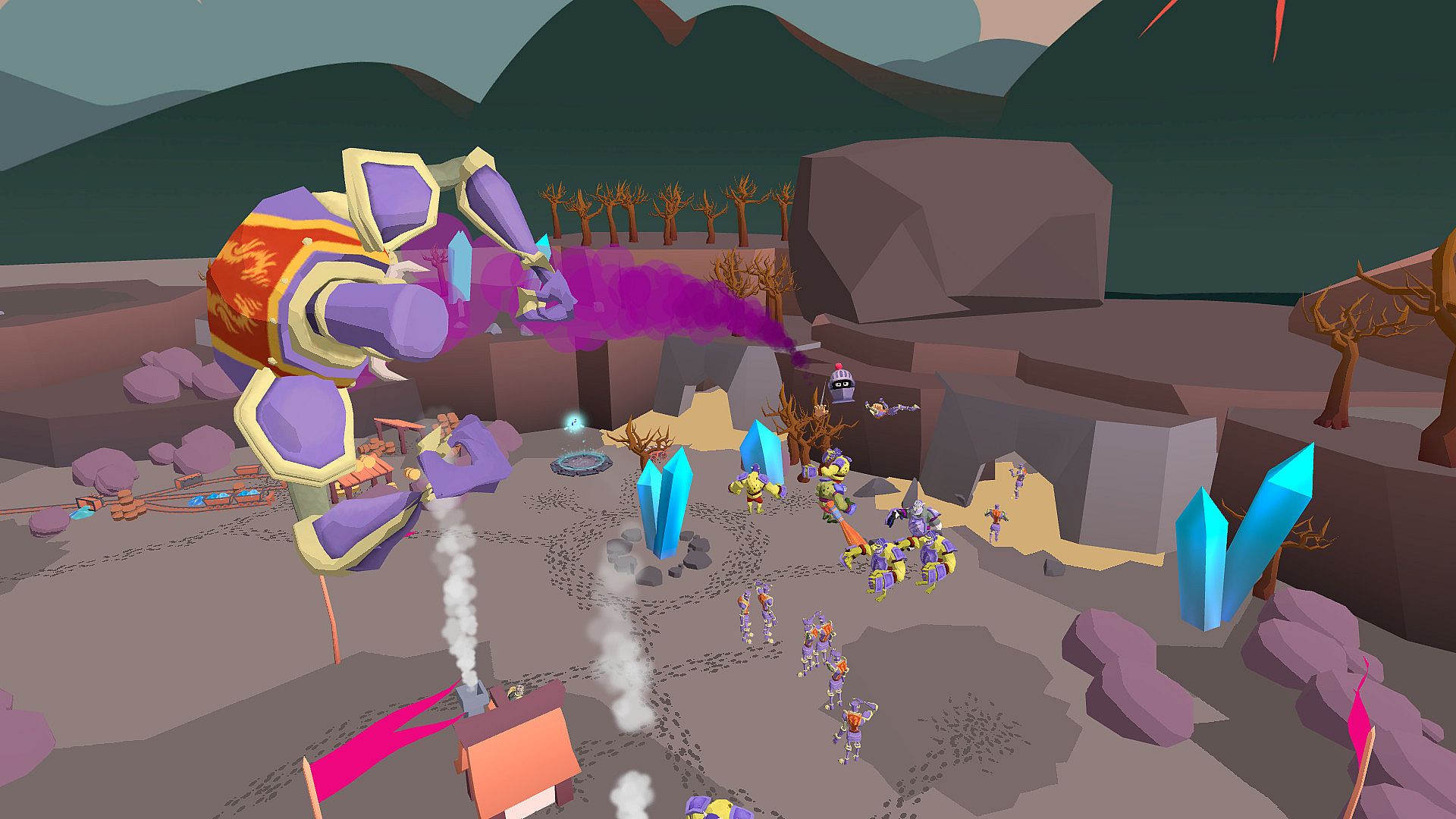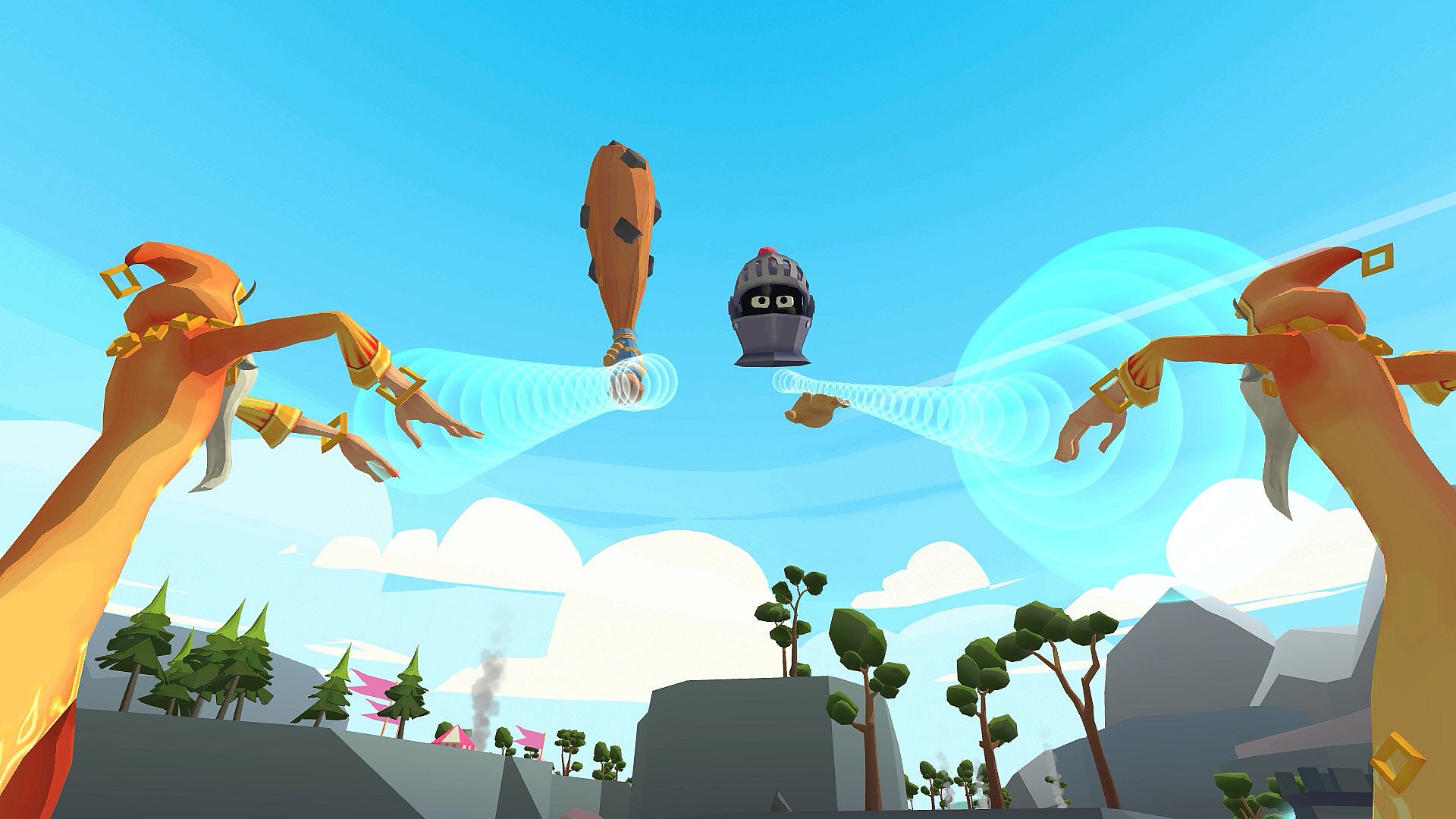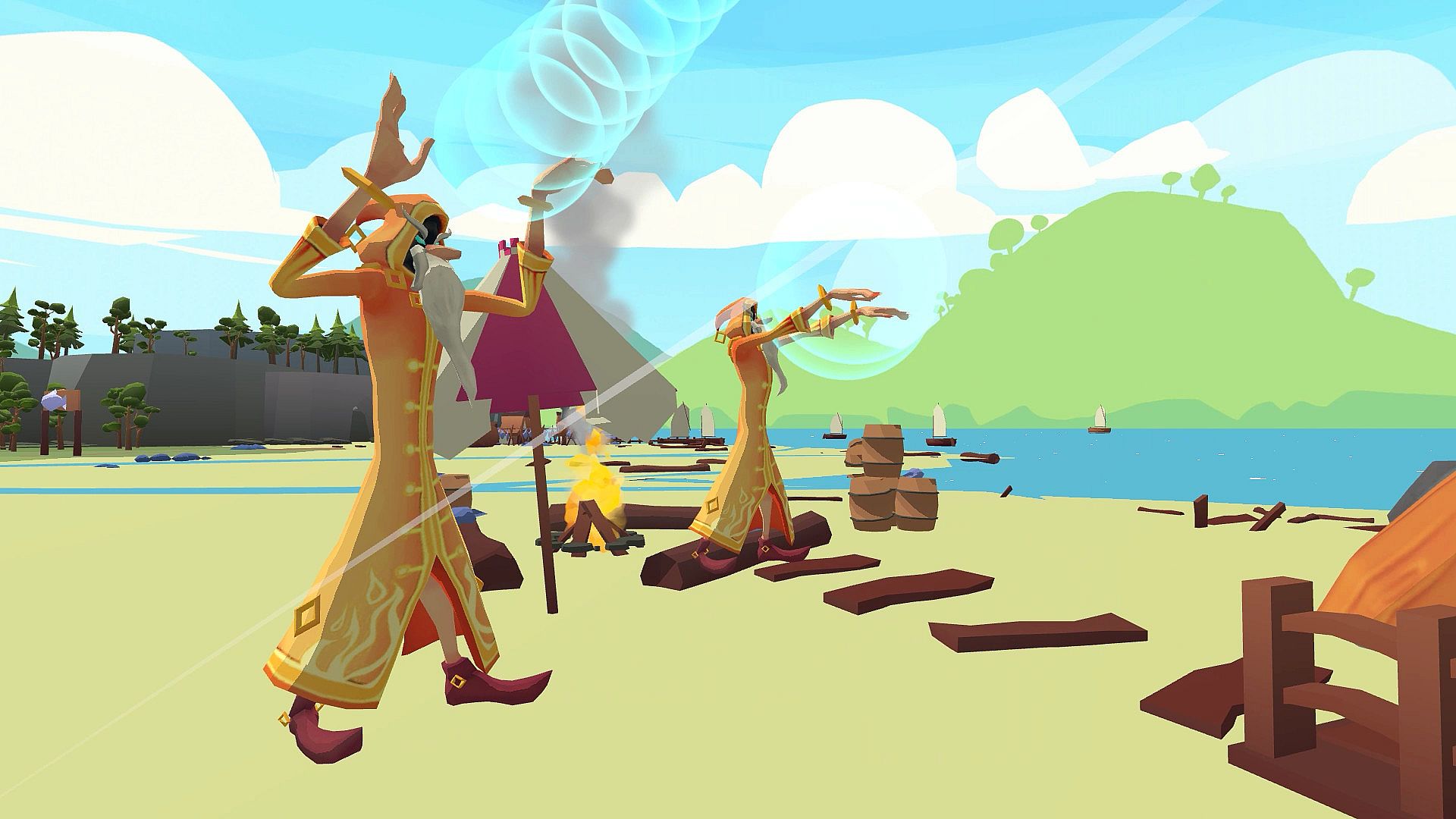 Invaders threaten your peaceful village, forcing you to defend it as a towering giant. Smash enemies with your fists or hurl buildings and objects to repel the hordes. Command villagers for counter-attacks, repair defenses, and station troops along the walls in this VR action strategy adventure. Wield ancient magics like fire, ice, and shadow, combining them with your giant strength to protect gold and lives. Hold the line against the king's forces until everyone reaches safety. Early access players command the chaos on PC with HTC Vive, Oculus Rift, Rift S, and soon Valve Index support.