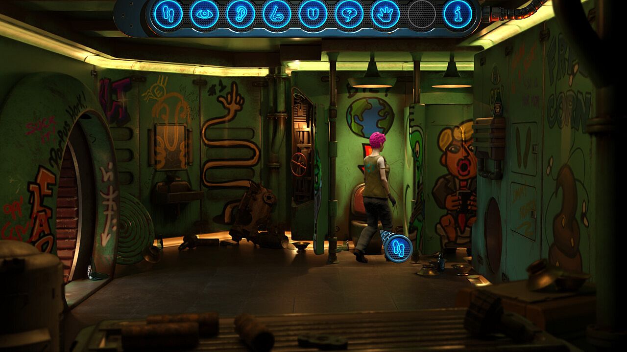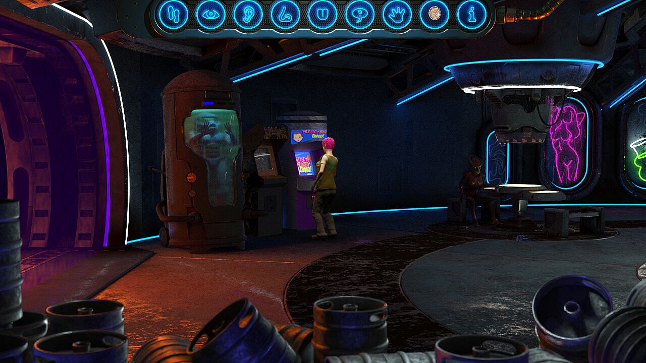 Featuring a classic point-and-click style with modern 3D-rendered graphics, full voice over dialog and full-motion cut scenes, Absolute Zero is a departure from the standard pixel graphics or hand-drawn images typical of this genre.