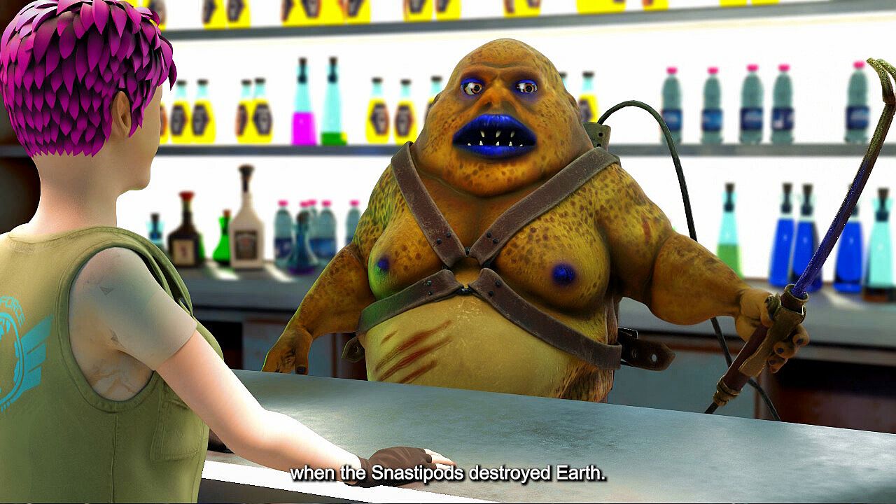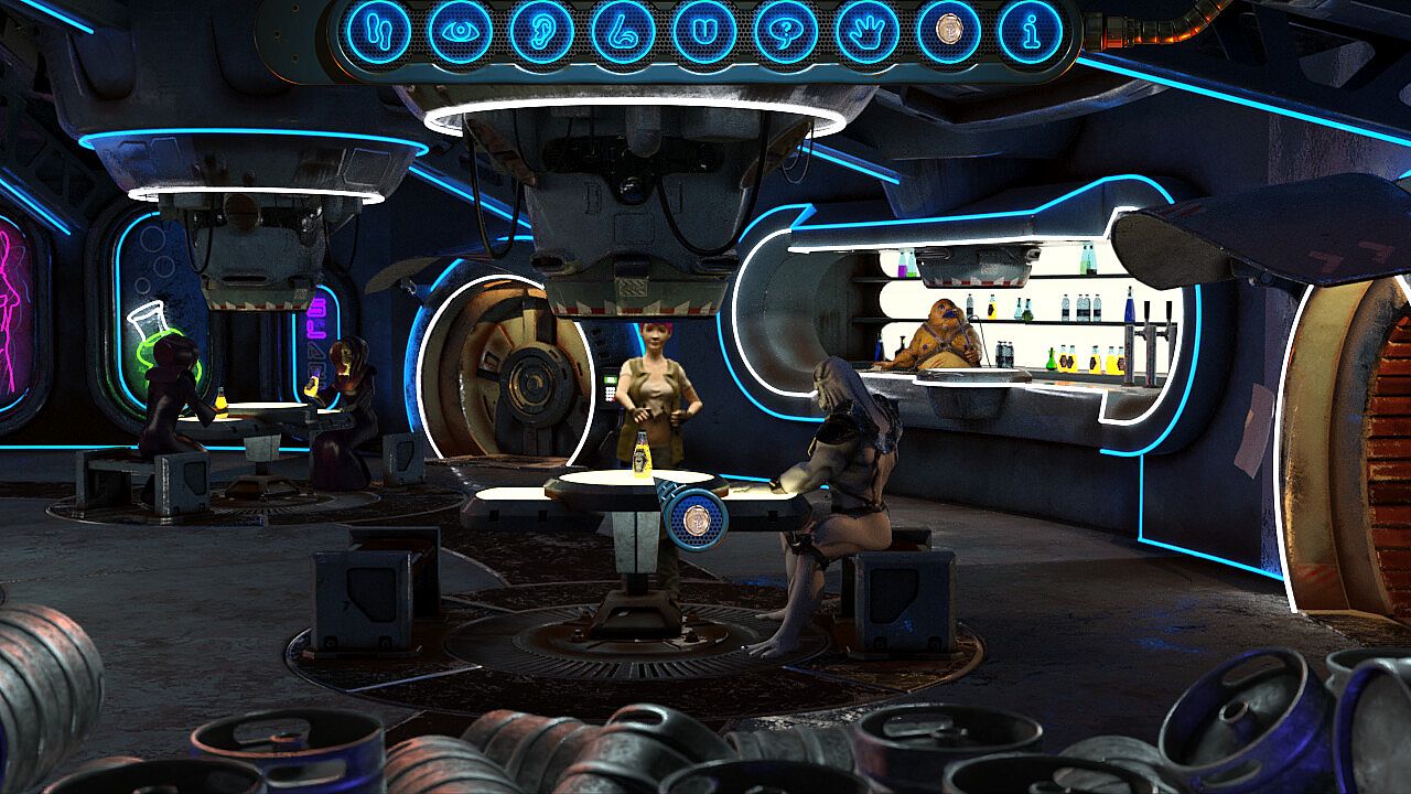 It is upon this refueling station, Absolute Zero, that Sammy Snark grinds out her duties of serving radioactive beer to the travelers waiting for ship repairs and refueling in the only bar for light years around, the Brain Gravy™ Bar.