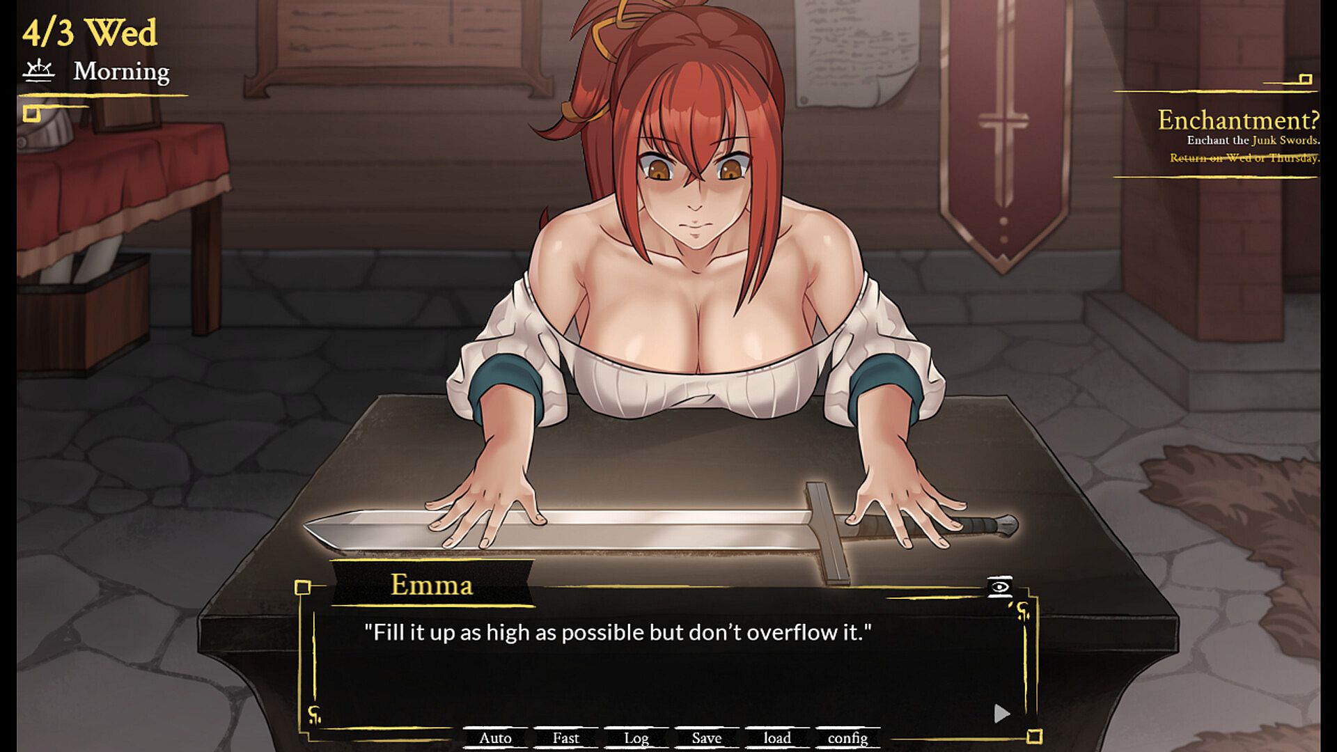 • Work as barmaid, enchant swords, run a store, complete quests/story events, train, go fishing and more to pass time.
