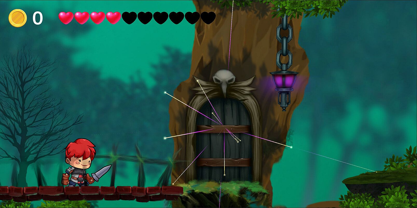 Like a knight in shining armor, help Red fight with monsters and free the Protectors of the Forest. Collect and upgrade weapons, coins and gems, find your way to the exit portal to back home.