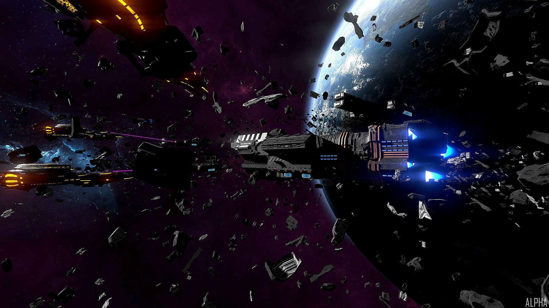 The year is 2563, and humanity is locked in a civil war. Desperately looking to break the stalemate the TDF has developed an advanced prototype ship with unique capabilities: the Orion. You, the Orion's pilot, are part of the first TDF battlegroup to encounter a new and hostile alien race; the Arkin. With both human factions weakened by decades of war a desperate struggle begins against the Arkin, who appear unstoppable and merciless in their destruction of every human ship and colony they encounter.