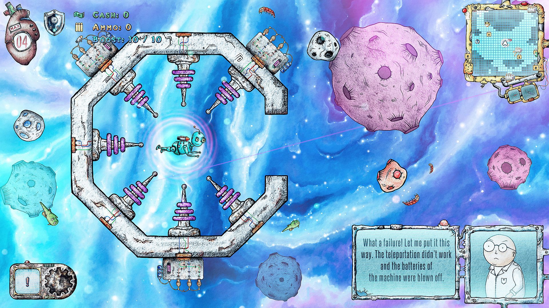 of your teleporter scattered across the asteroid belt.