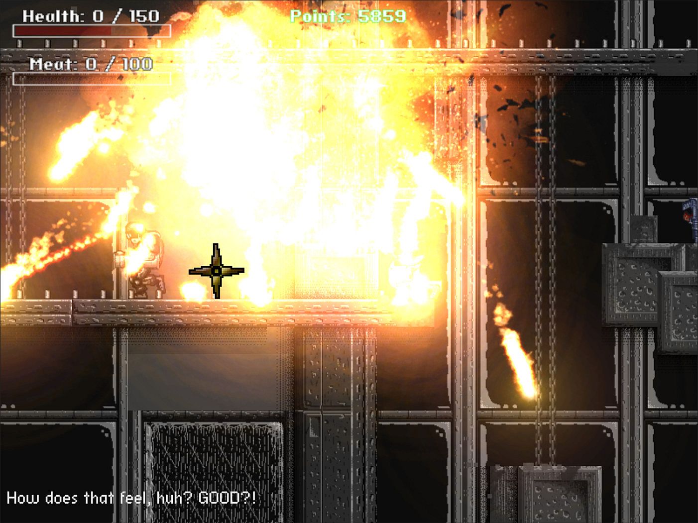 The gameplay is pretty straight-forward: kill enemies, eat their meat, find more enemies, repeat. Really, there is not more to it. Yes, the game is very violent, but it does not try to hide this behind euphemisms; it is very blunt about that, which makes this the kind of over-the-top ridiculous gem that we from Das Humankapital like to play.