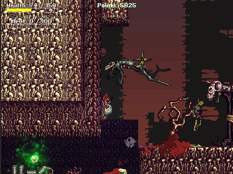 “Atomic Butcher: Homo Metabolicus” is a deranged, fast-paced, ridiculously gory, post-apocalyptic retro 2D platformer/shooter with 360° aiming.