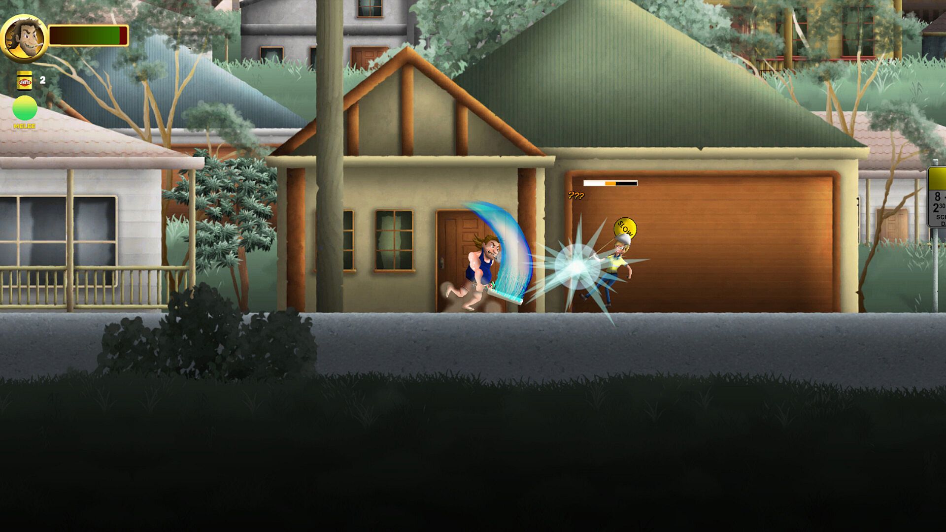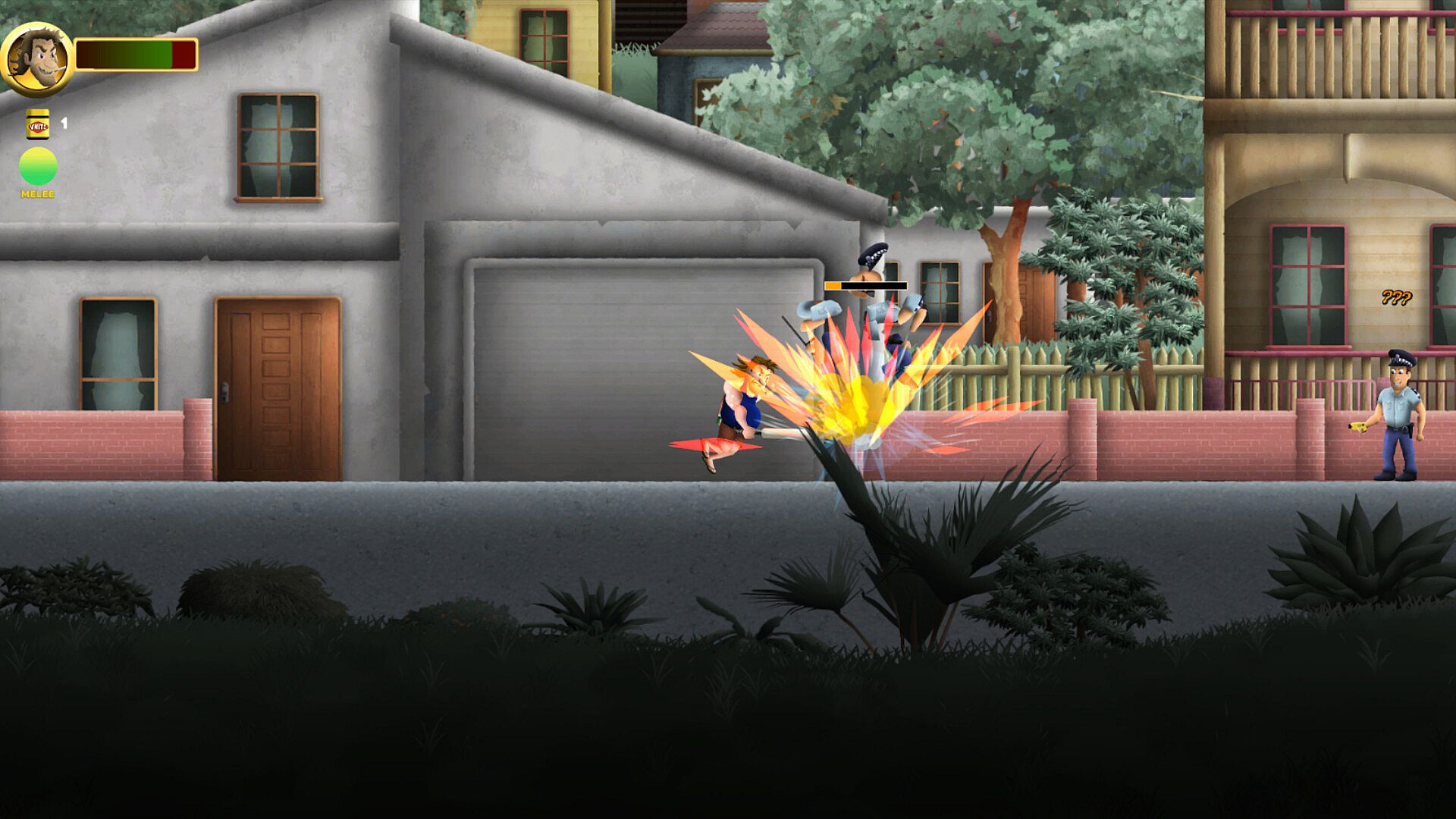 With plenty of toe-to-toe knuckle sandwich showdowns, combat in Aussie Bogan Hero is a glorious mess of backyard brawling and improvised mayhem. It’s not about finesse—it’s about fightin' dirty and lookin' good in a singlet.
