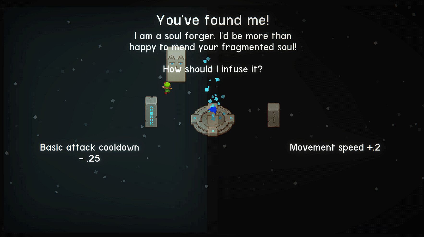 Defeating bosses garners the attention of Soul Forgers who will mend the hero’s fragmented soul and grant boons, but beware, the being that stole it in the first place still roams the lands.
