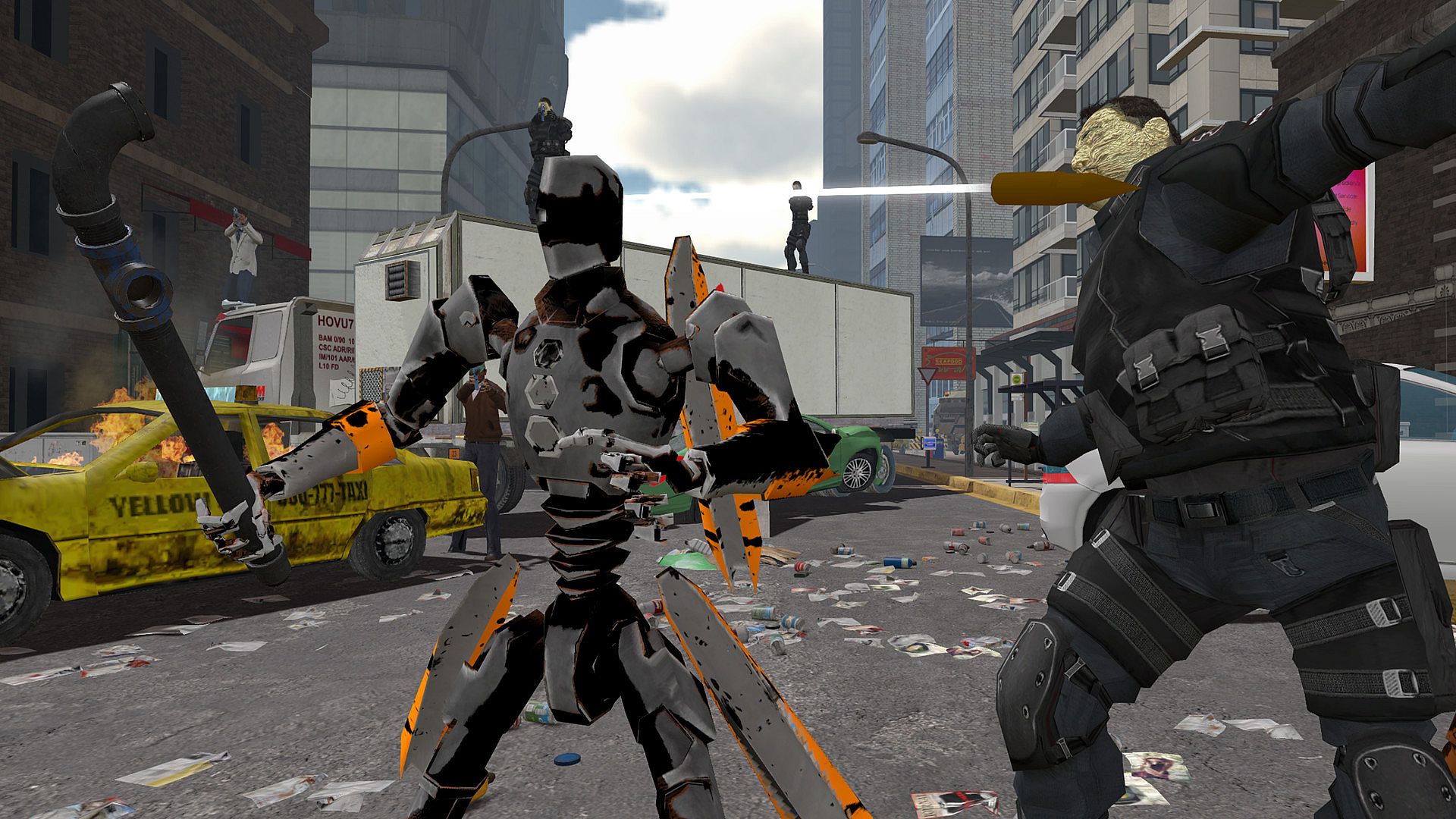 Step into the shoes of Axeson Fury, a regular guy thrust into chaos as society unravels with coordinated attacks from soldiers, police, and civilians. Fight through burning city streets, train yards, suburbs, bridges, and countryside using dual-wielded fifties and acquired weapons in this classic rails shooter built for VR. A unique arcade-style locomotion advances you position by position, demanding sharp wits against enemies like helicopters, drones, spider tanks, mechs, droids, zombies, and mercs. Blast foes that charge, flank from cover, or snipe from afar, switching guns via an in-game menu with fast arcade reloading. Leverage powerups such as slowmo, continuous fire, health packs, miniguns, grenade launchers, traps, and environmental explosives across 21 levels in 10 episodes tied by comic storylines. Replay to climb from 1-star to 4-star difficulty, perfect for VR action fans craving hardcore, adrenaline-fueled indie shooting on PC.