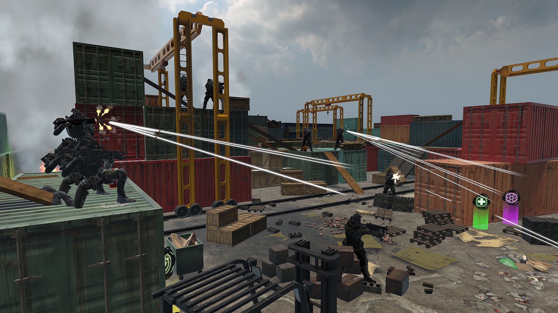 • Big guns, helicopters, drones, spider tanks, spider bombs, mechs, droids, zombies, mercs...