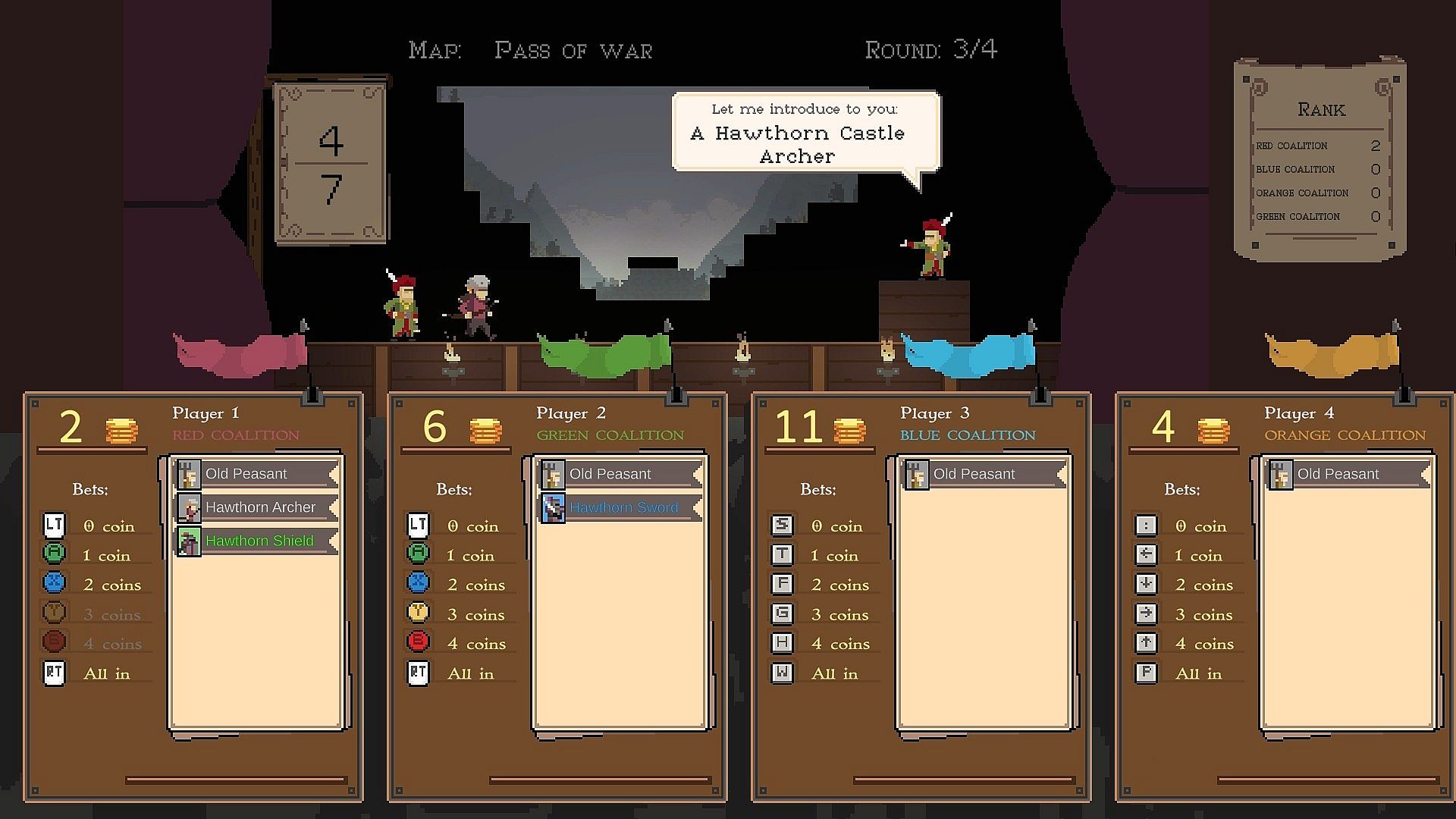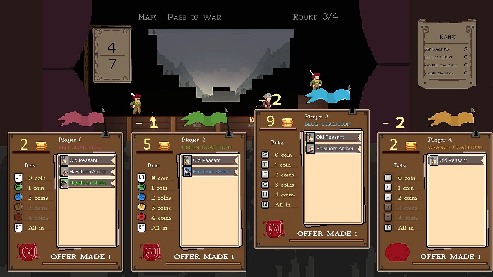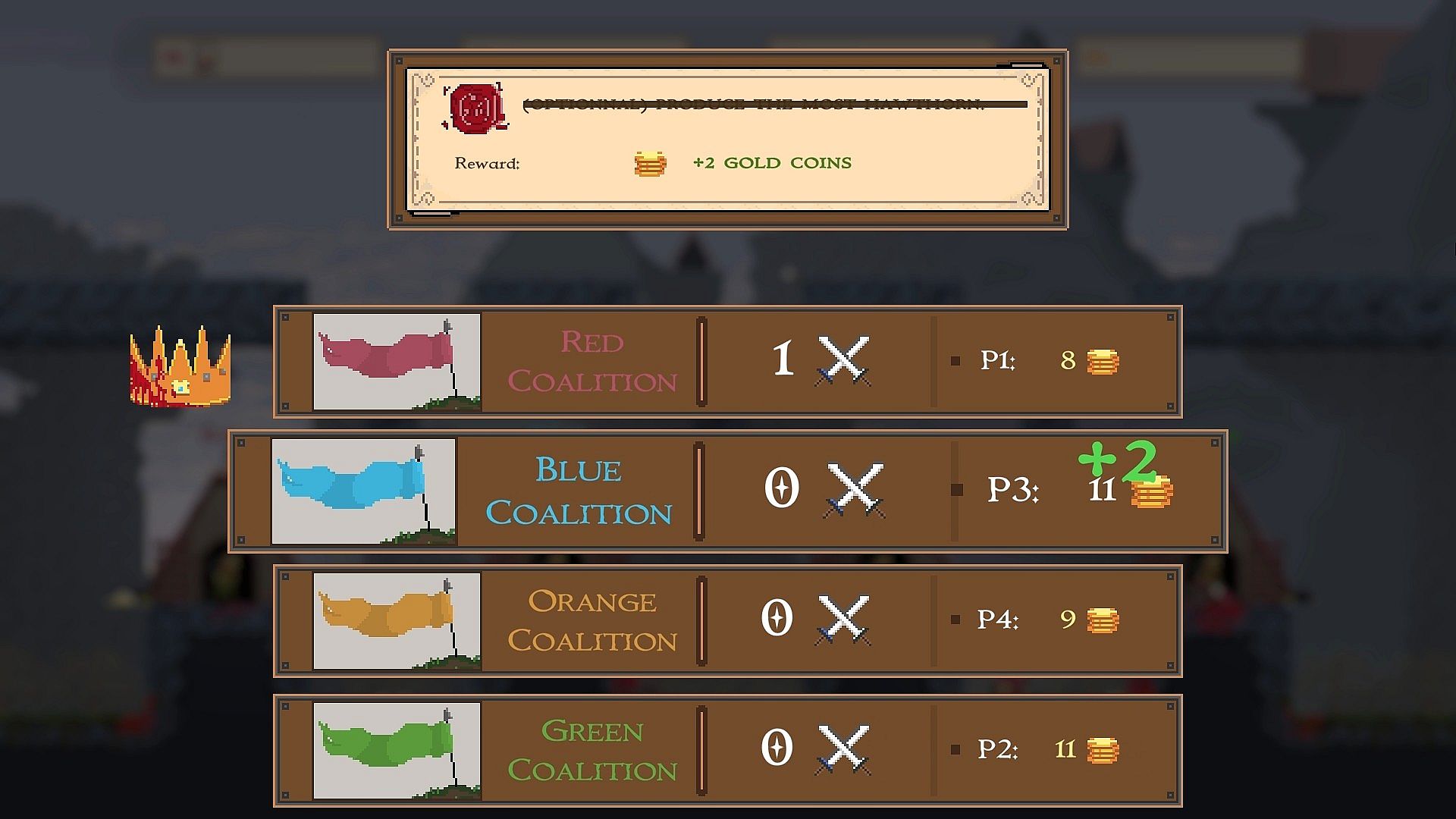 The player or coalition (if you play with teams) with the most battles won is declared the winner ! To spice things up, losers get one more coin after each battle and additional coins can be earned at the end of certain battles if you complete optional objectives.