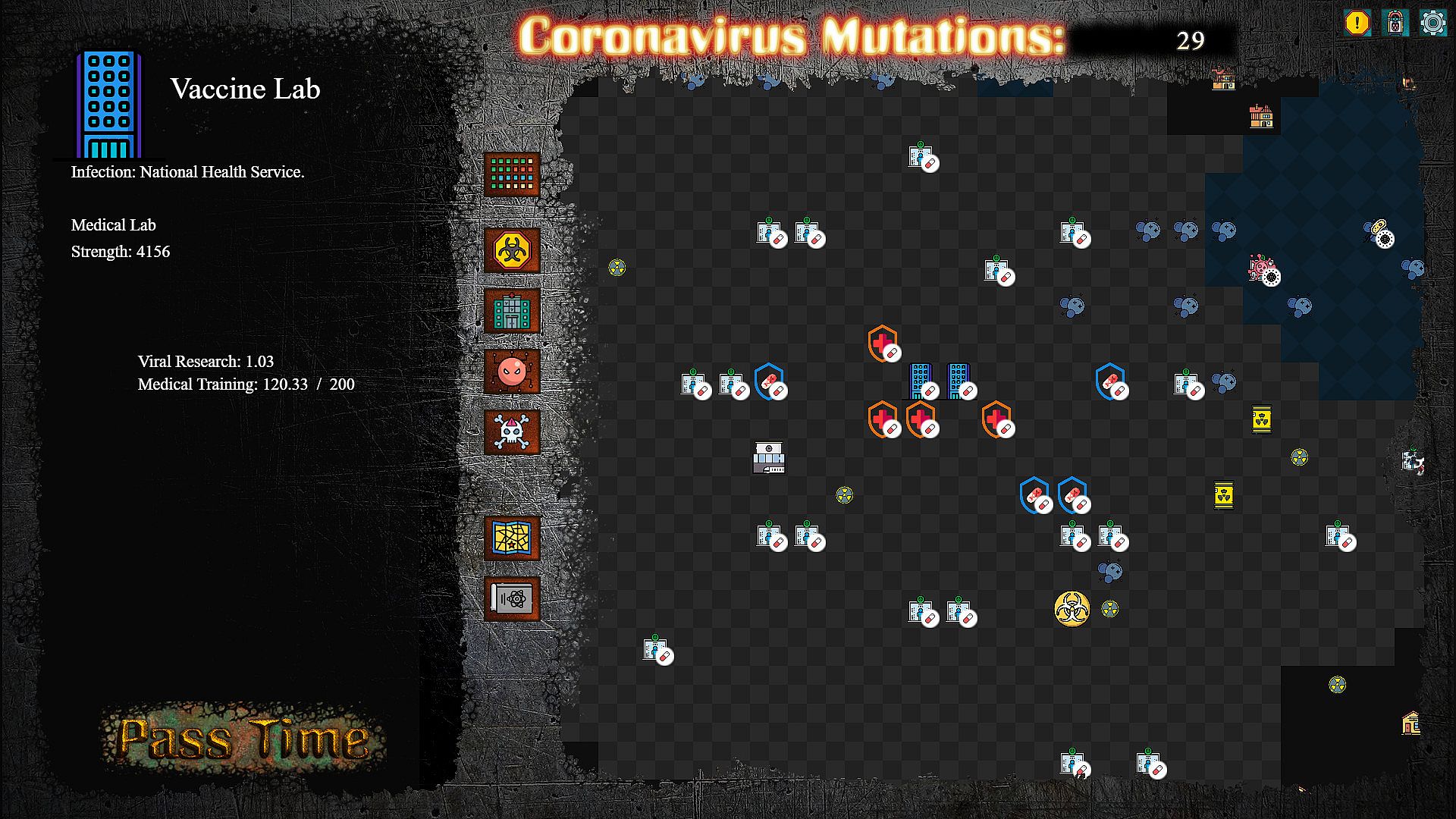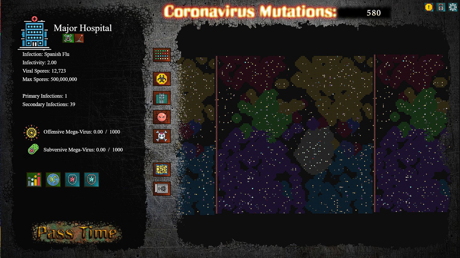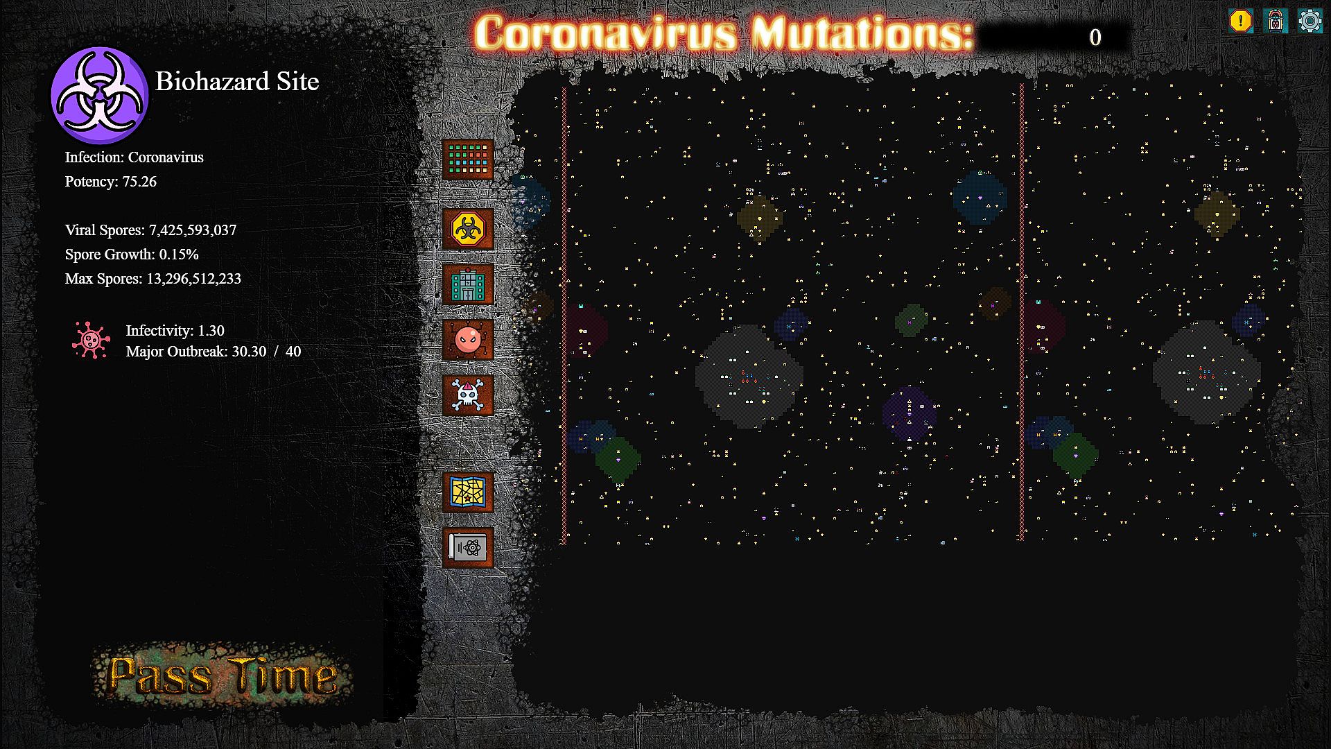 At the core of the game, is the Virus you are nurturing. It will begin by infecting the different buildings in the city, mutating into various strains, establishing defence pathogens, sending out spores to convert other viruses, and eventually begin work on taking over hospitals and creating Mega-Strains. So long as no other virus stops it.