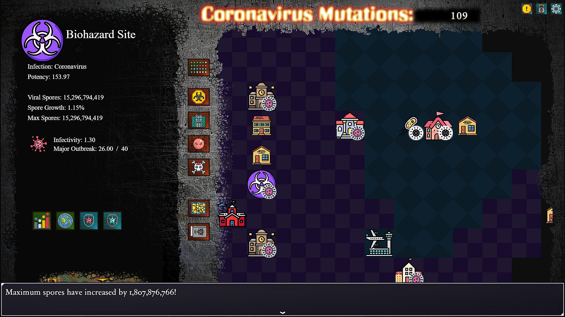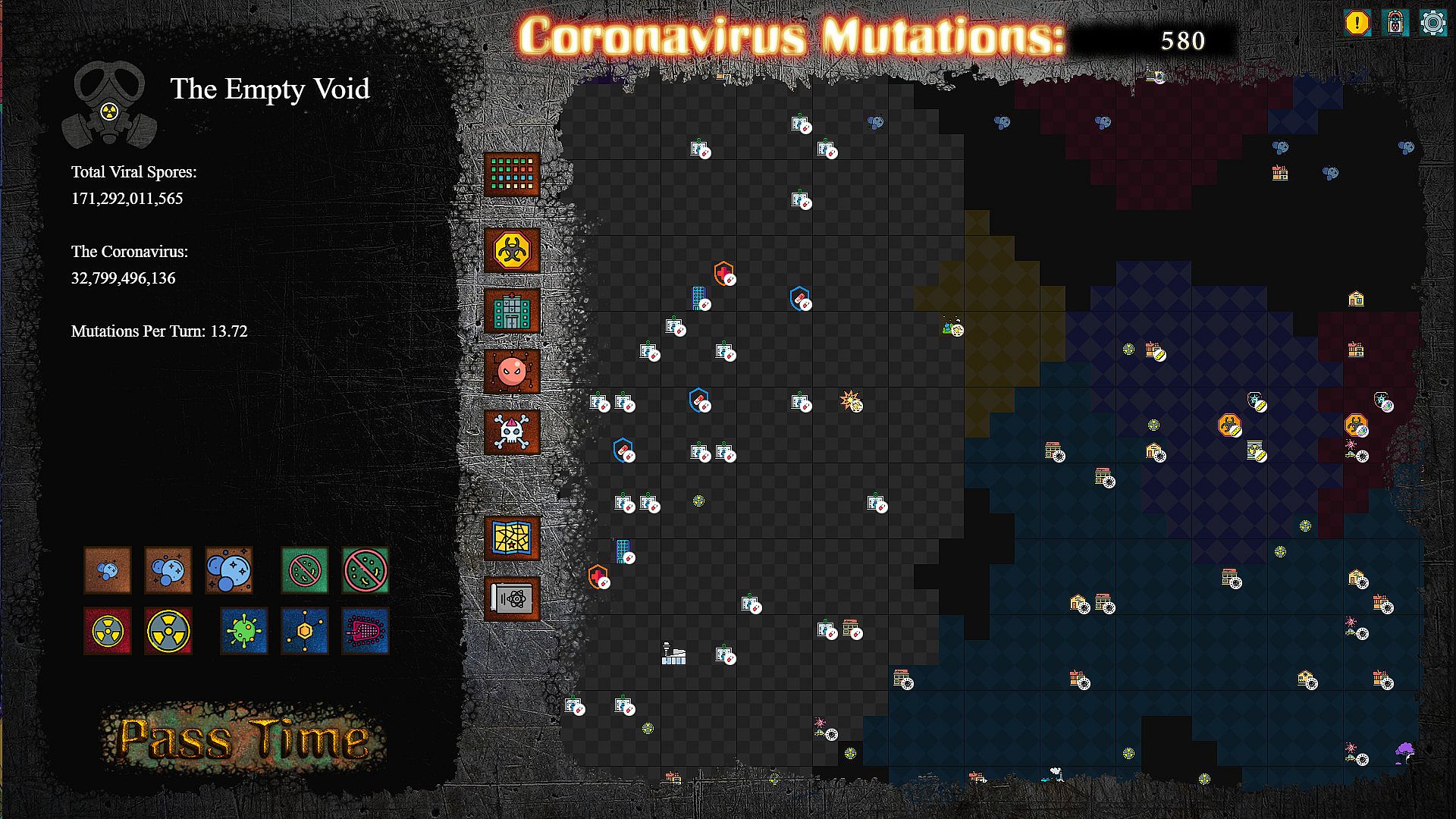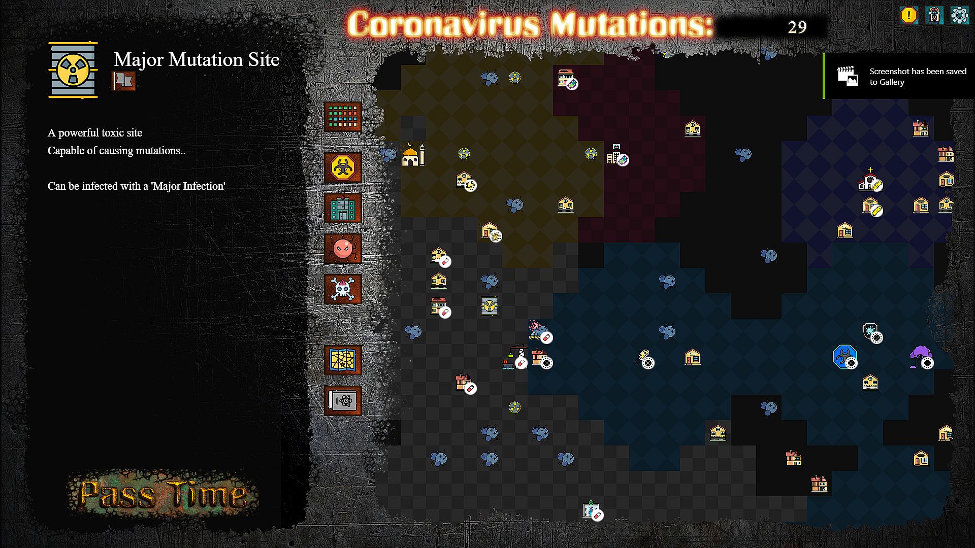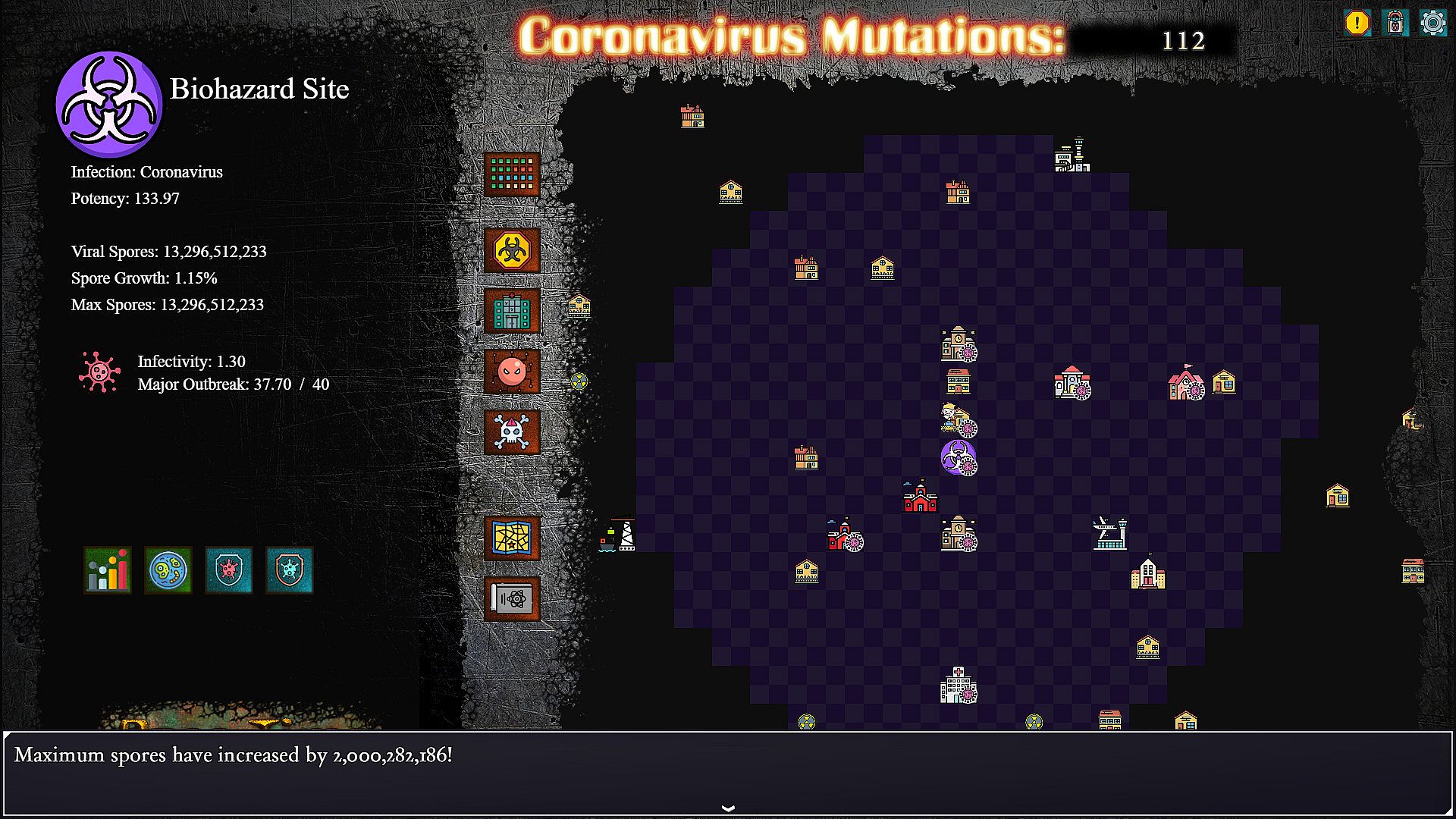 At the core of the game, is the Virus you are nurturing. It will begin by infecting the different buildings in the city, mutating into various strains, establishing defence pathogens, sending out spores to convert other viruses, and eventually begin work on taking over hospitals and creating Mega-Strains. So long as no other virus stops it.