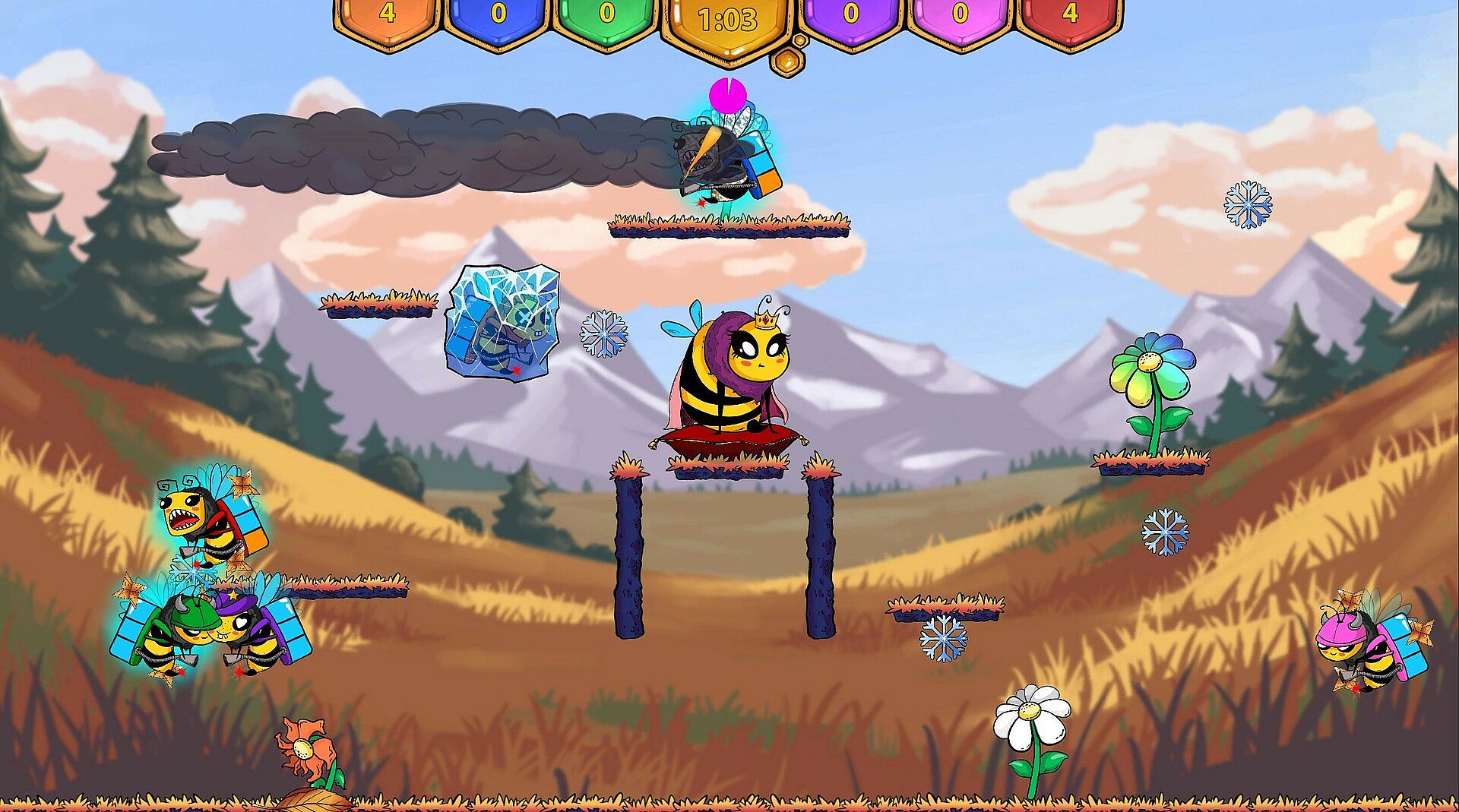 Winter is coming and the Hive needs resources. Become the Queens' Champion collecting pollen against the clock, facing the environment and sabotaging the other players.