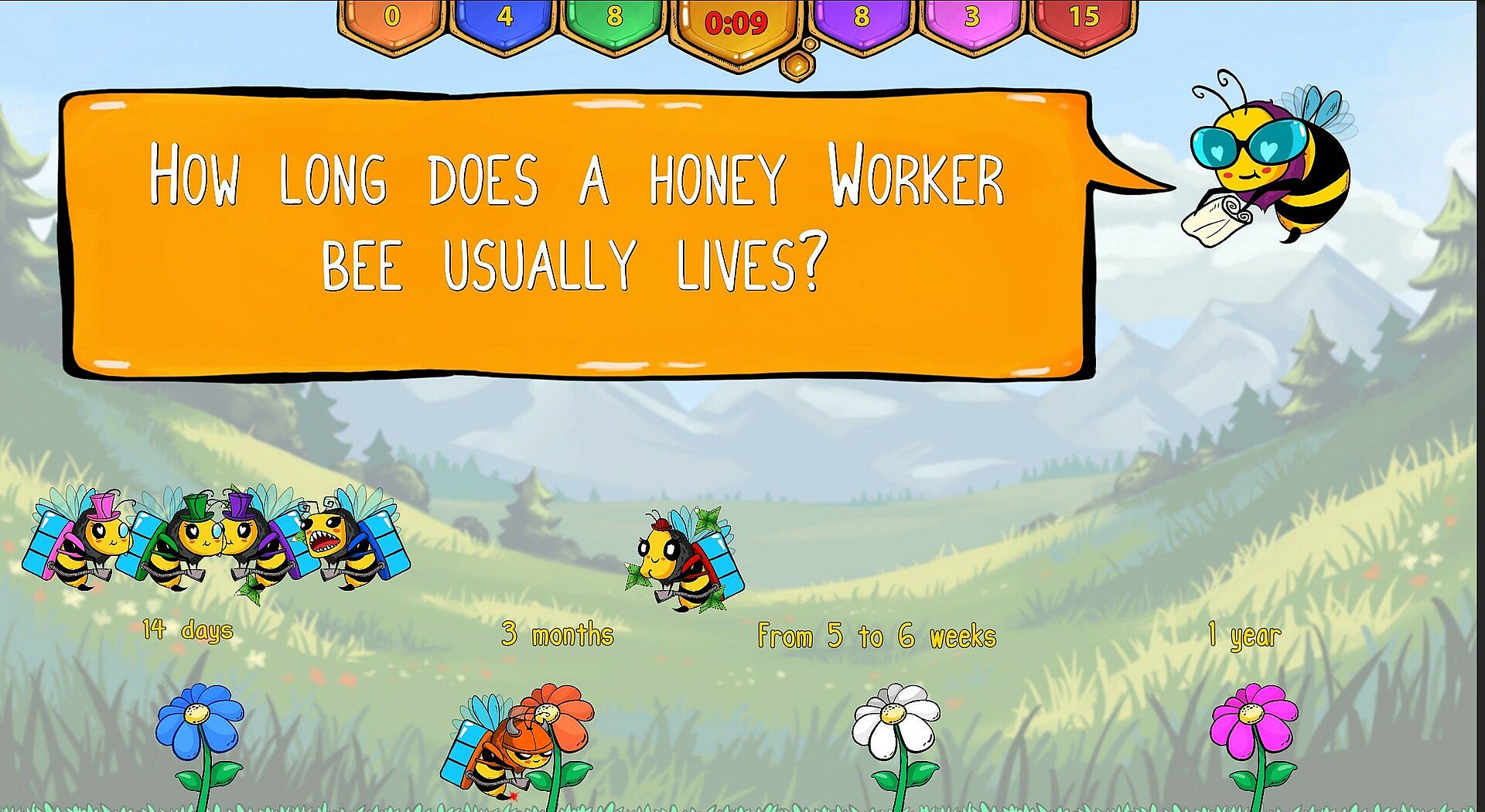 A Party-Game to learn about many astounding details of the bees while having fun sabotaging each other and getting quizzed.