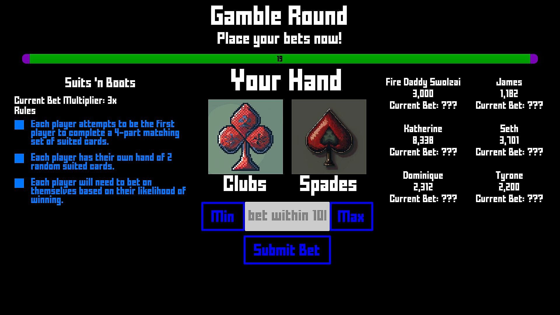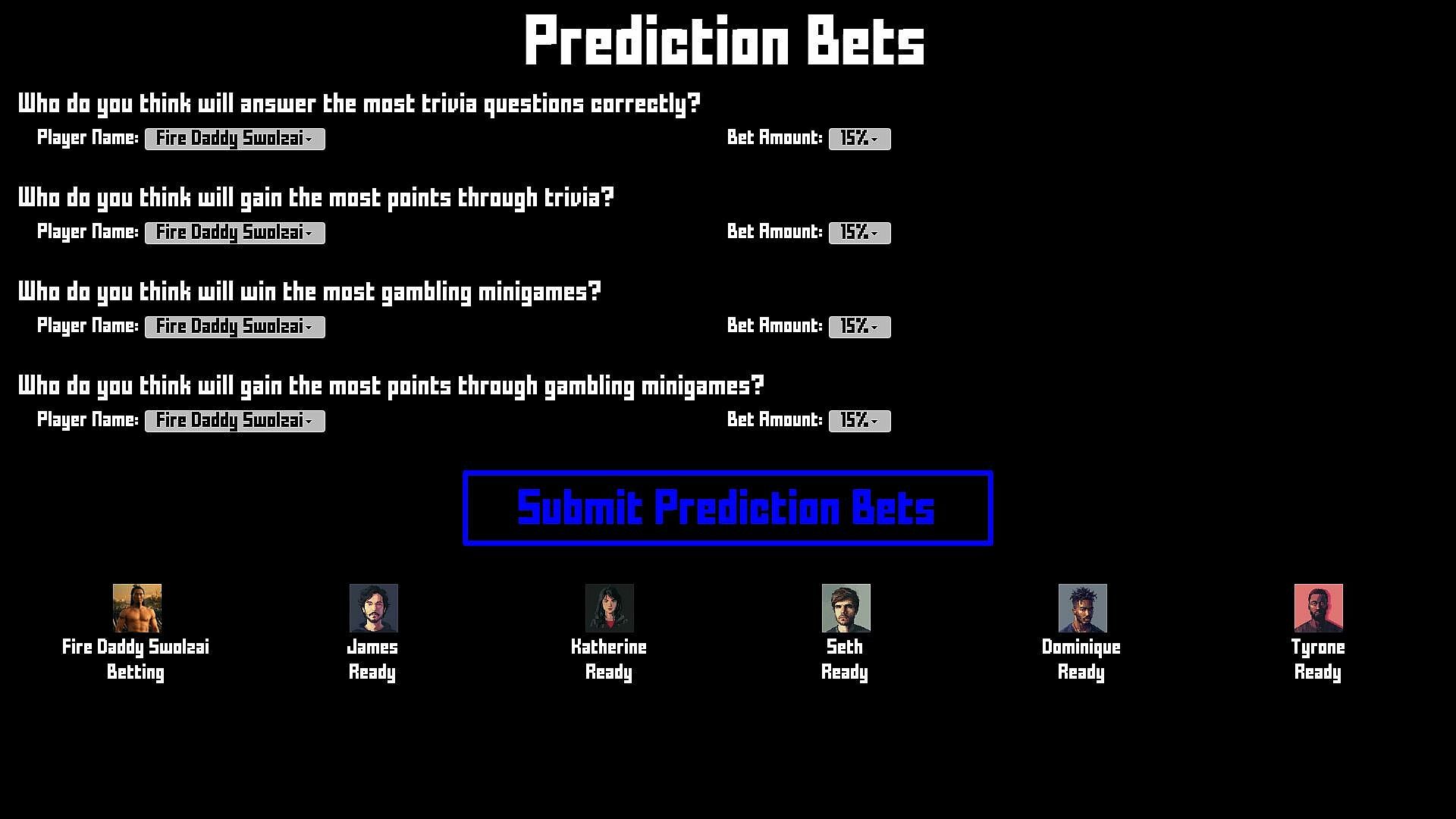 Bet Your Brain is a trivia game with the twist of gambling your earnings throughout the game. Players alternate between answering questions and participating in gambling minigames attempting to accumulate the most wealth before the end of the game. Compete against bots or your friends in an attempt to call yourself the King of both knowledge and luck.