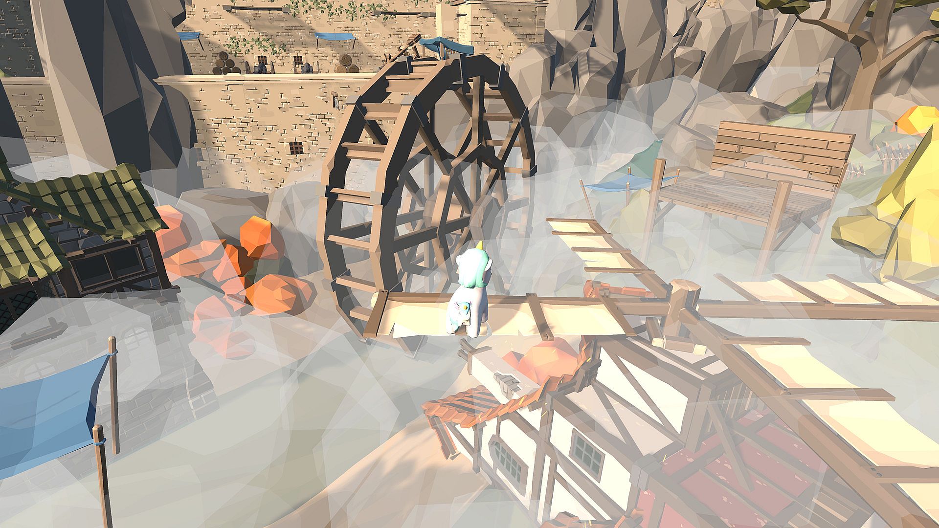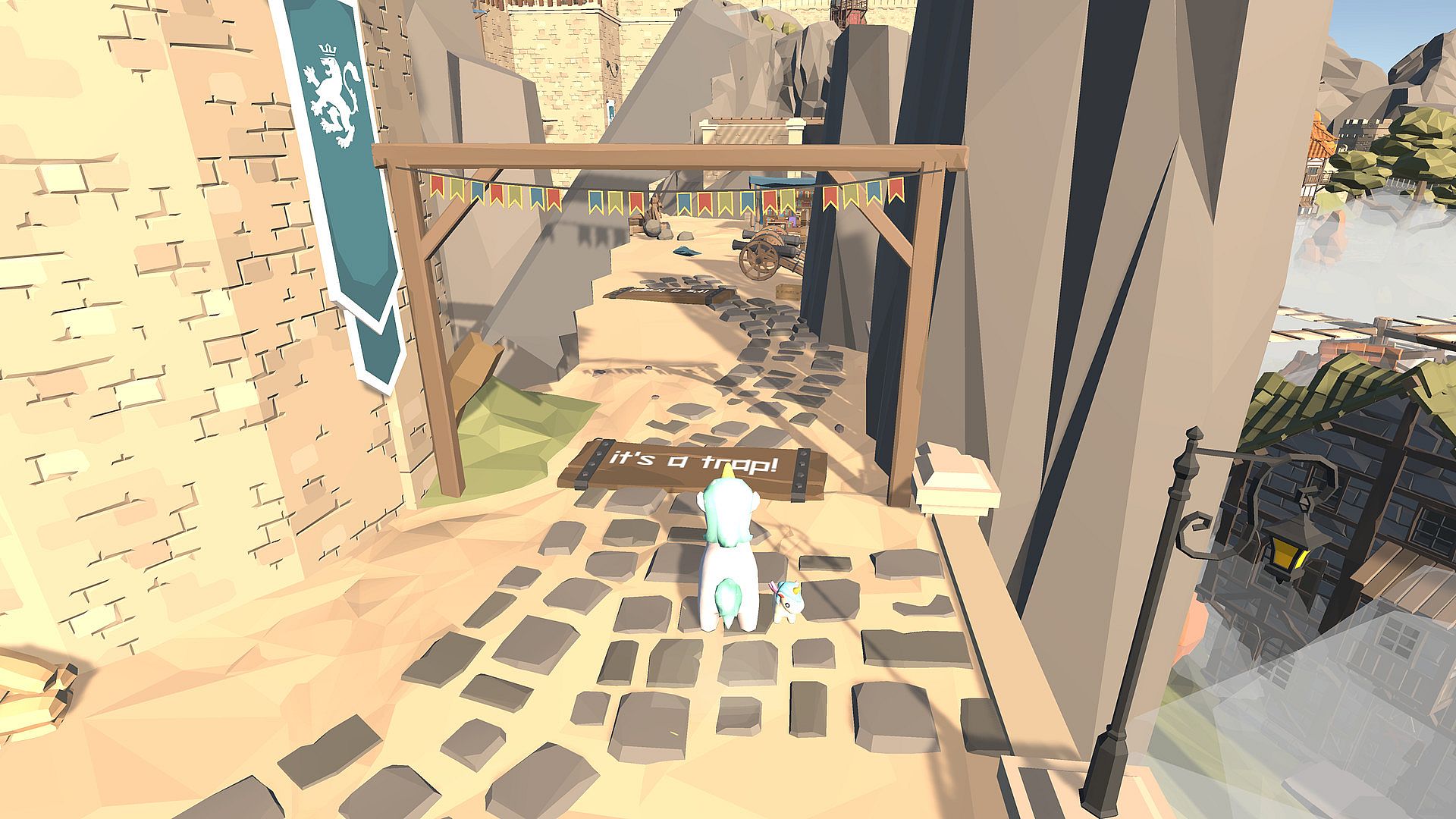 There is a big party on top of the castle, but Big Yeetus is late! The entry has already closed, so they need to find another way up to join the party.