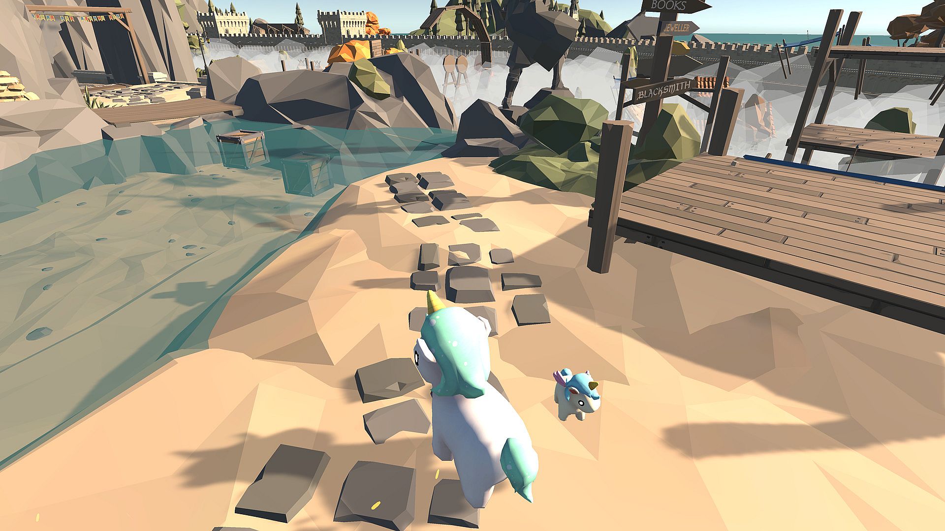 As the unicorn Big Yeetus you have to run along a parcour to the top of the castle. Most things in the game will kill you instantly if you touch them. This is a difficult game that takes some practice to beat. When you have learned how to pass a section you can finish it very fast though.