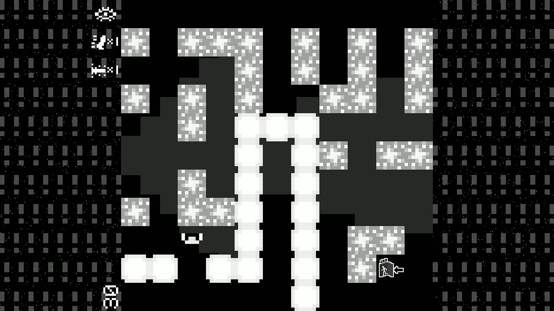 Grid-based puzzles challenge you in Blind_ with layouts fully concealed at the start of each room. You deduce positions through careful moves or bold leaps to reveal surroundings bit by bit. Core mechanics stay simple, ensuring every action yields predictable results amid escalating twists. New elements like labyrinths, portals, wrapping edges, and double-sided levels keep puzzles fresh across 60 rooms. Monochrome pixel art pairs with atmospheric tracks from the 2017 album Spiral Out Of Control. Indie enthusiasts who savor precise deduction and minimalist design find a tight package here, complete with variant color endings.