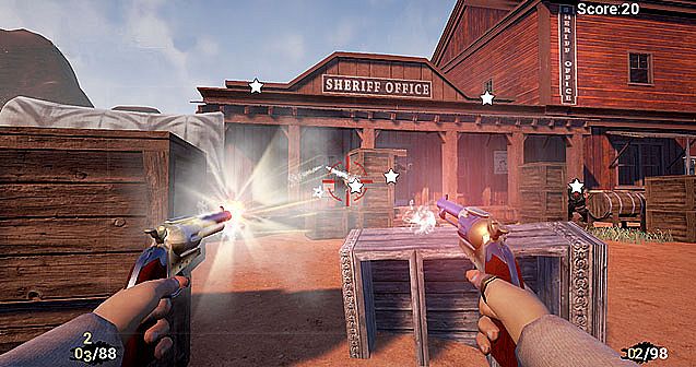 • In the score mode, you will be a bounty hunter, fighting with bandits in towns and wilds.