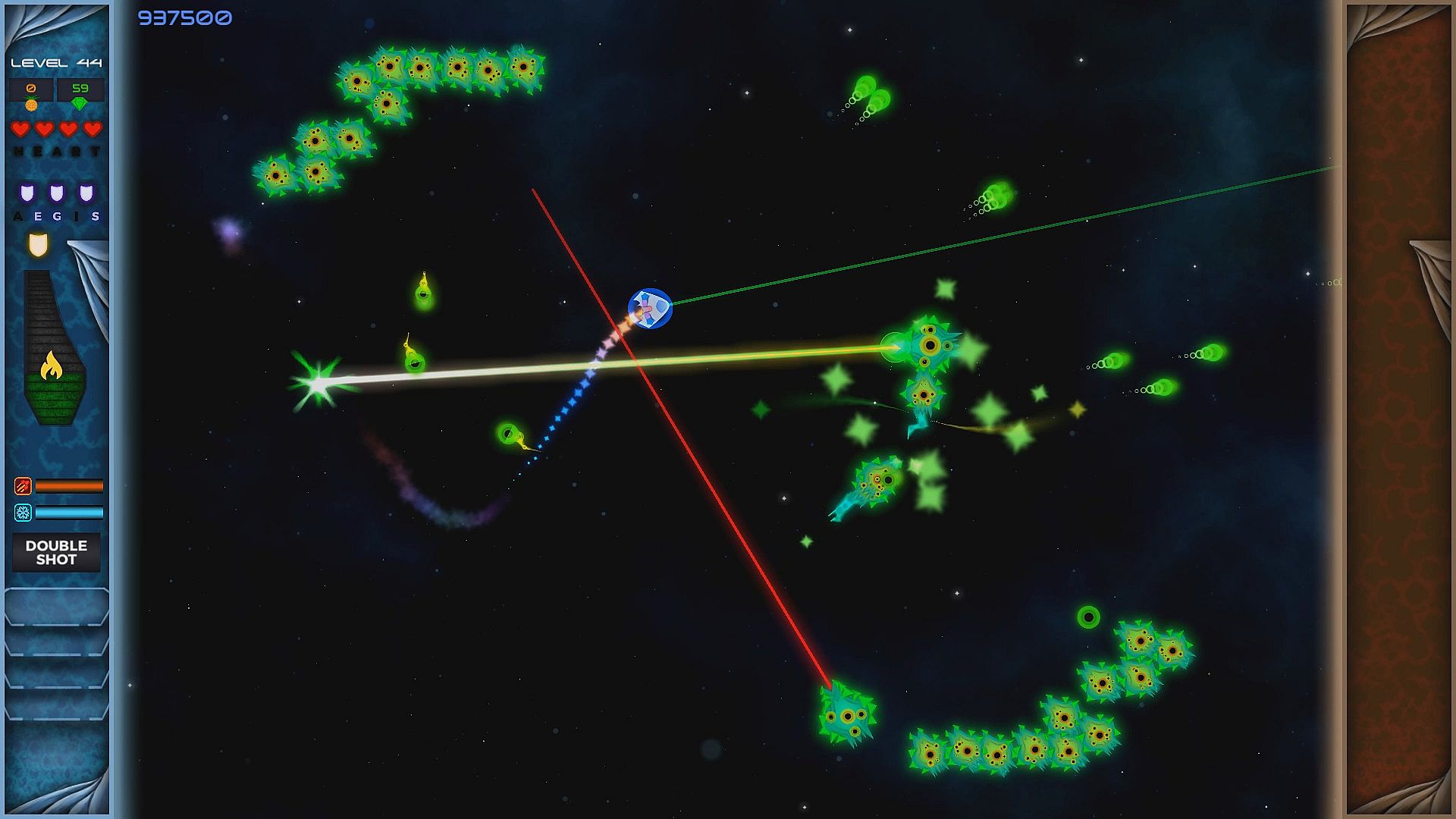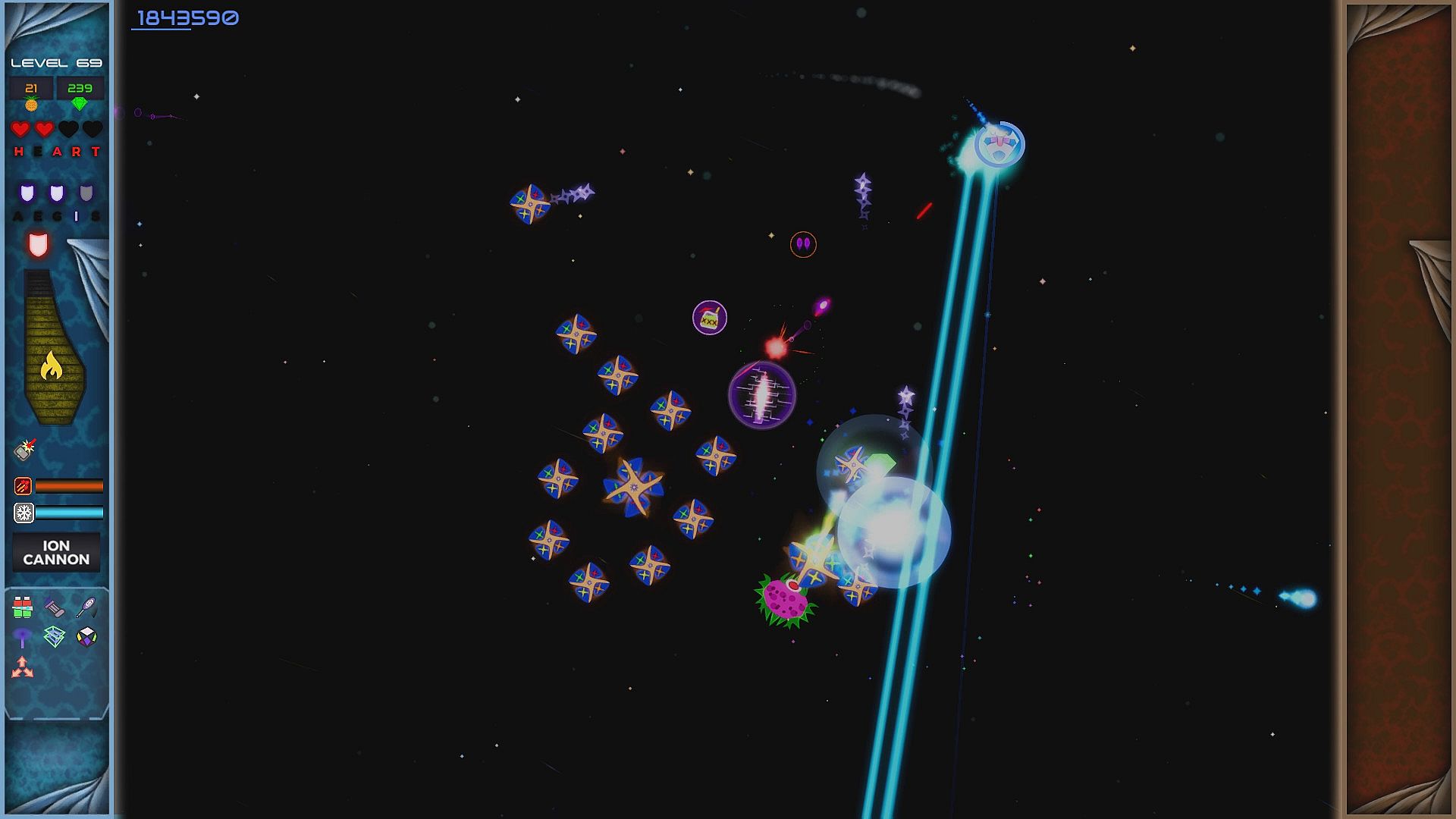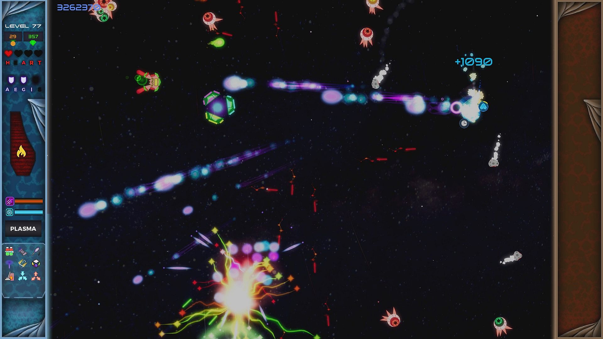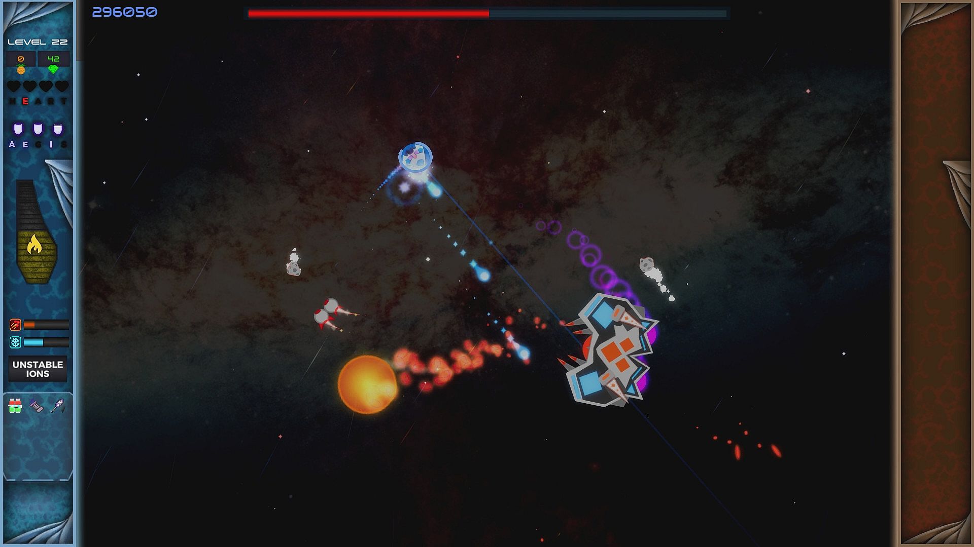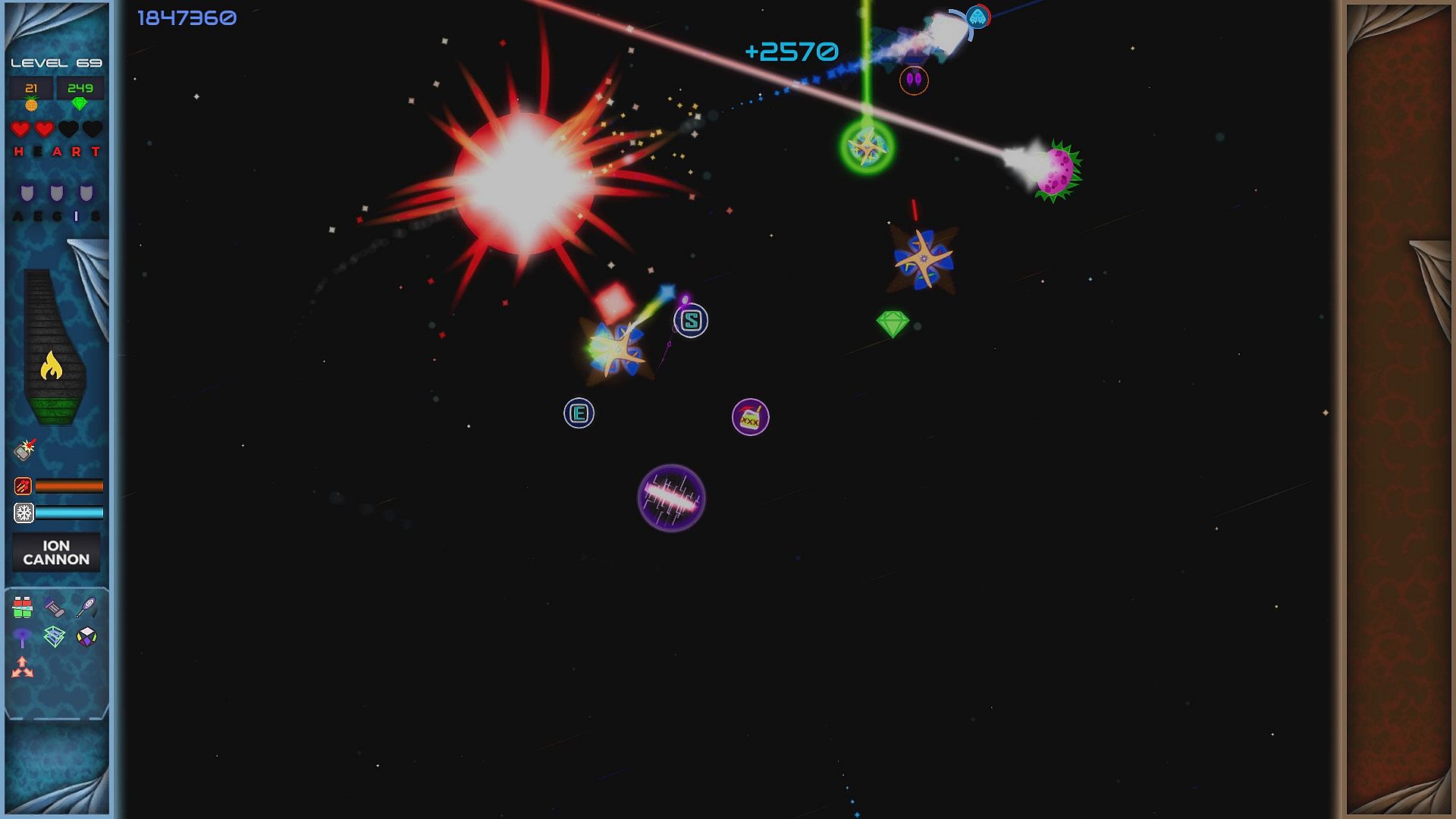 Blow up colorful aliens in this fast-paced indie action game and push your limits before the onslaught overwhelms you. Steer your fighter, boost to drift, and line up shots to unleash destruction. Shooting builds heat, so collect cooling upgrades or drift to shed the excess, while double-tapping boost delivers quick evasion. One hit without shields costs a life, but disengage to let AEGIS recover fast. Tackle 50 escalating levels that loop with tougher challenges, upgrade your ship with dash items, extra shields, and weapons between sectors, and face bosses for the true test. Optional local two-player co-op adds shared chaos via extra controllers or keyboard. Leaderboards track top runs amid vibrant explosions, drawing in casual players who crave endless high-score chases on PC.