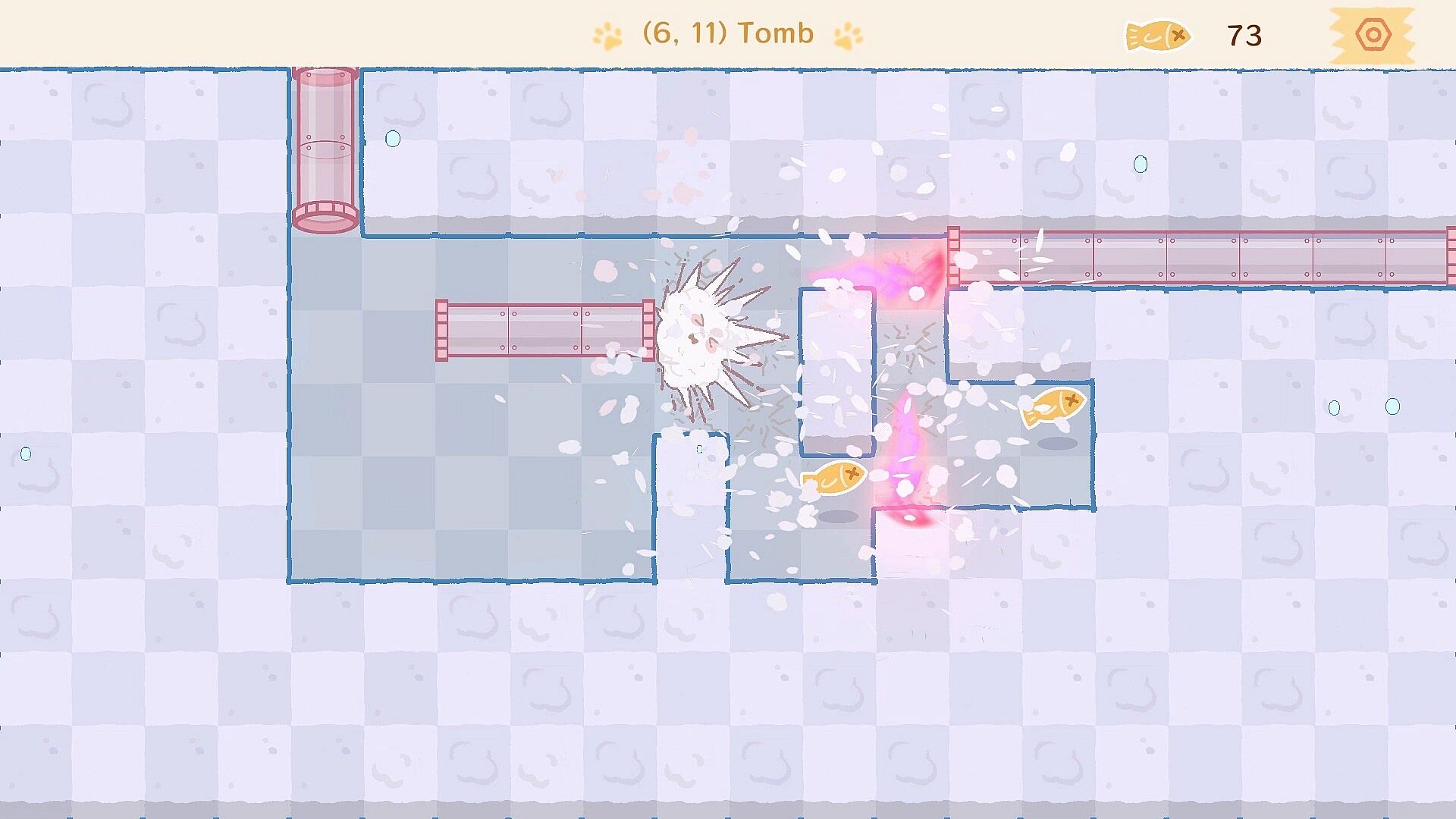 Use the pipes and walls in the environment to push the boxes and solve the puzzles, without missing a single dried fish!