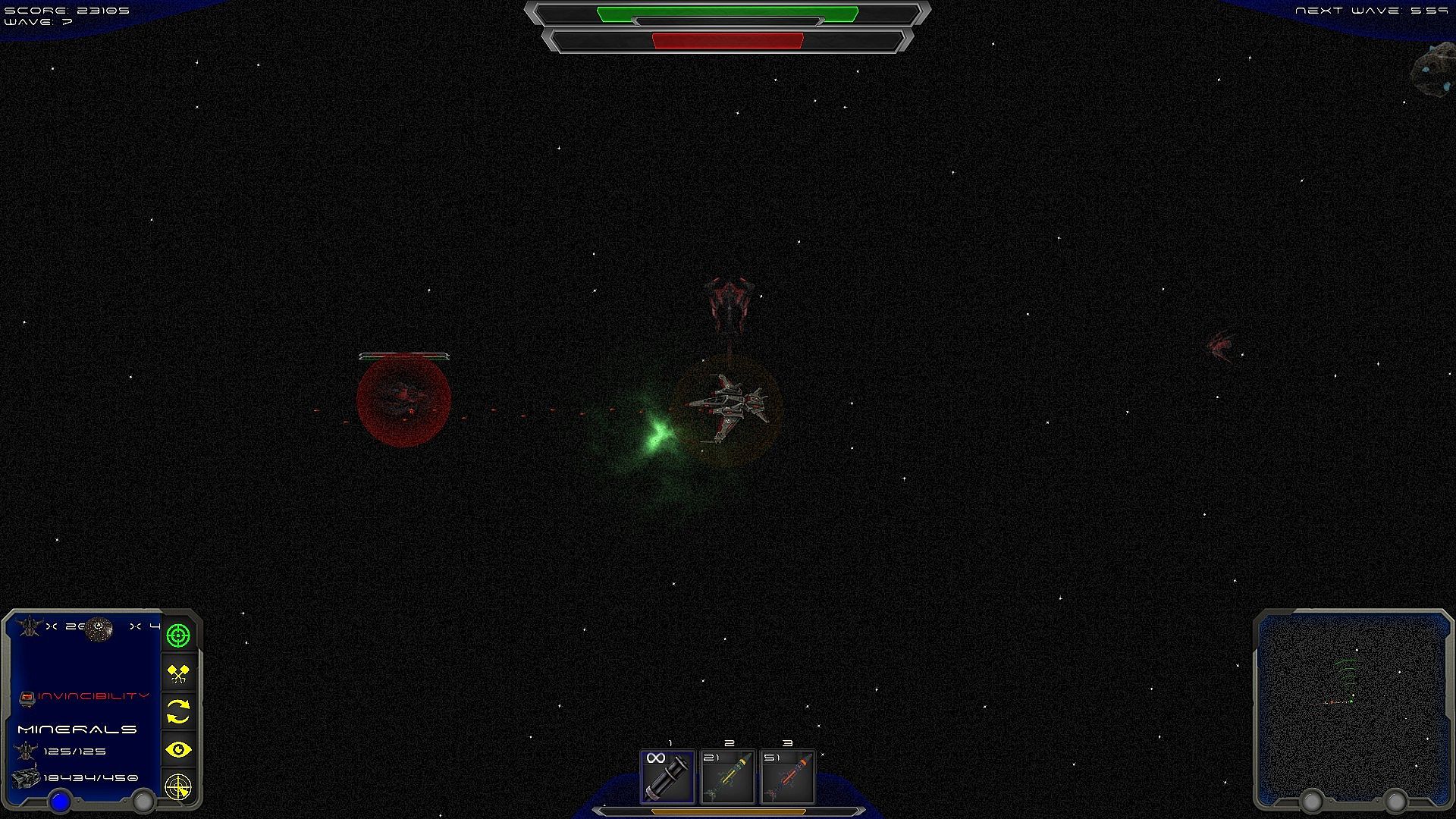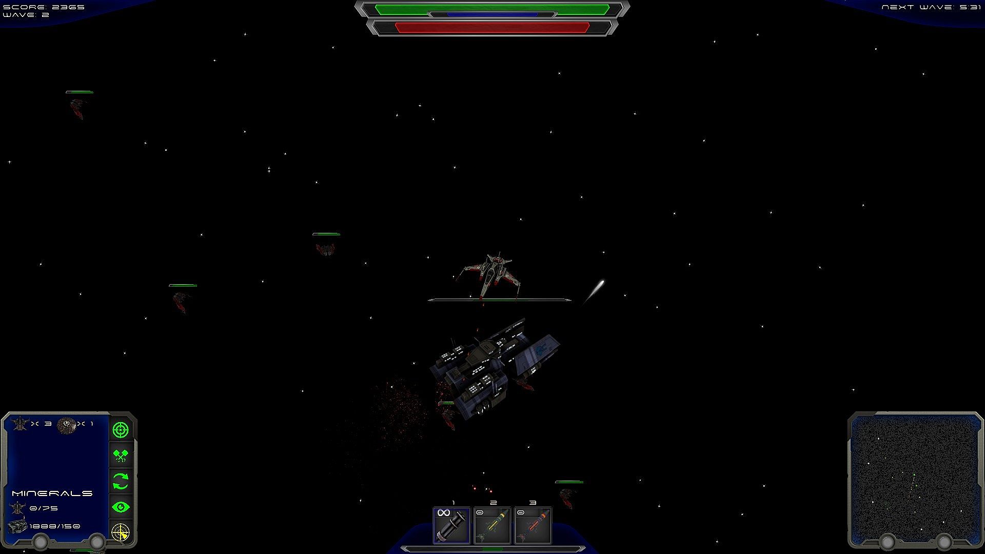 There are ten waves each bringing a new type of enemy ship to the sector that will require different tactics to defeat. You will need to upgrade your ship and base to stand a chance of defeating each new threat. The waves start off in a casual manner but the sector will soon become teaming with enemies as each wave progresses to become a fast paced battle to save the colony.