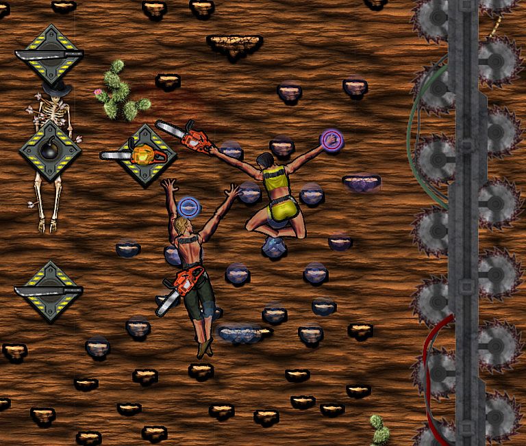 • 4-Player Sumo Arena where players attempt to knock each other out of the ring into a flurry of buzzsaws to see who is really - king of the mountain.