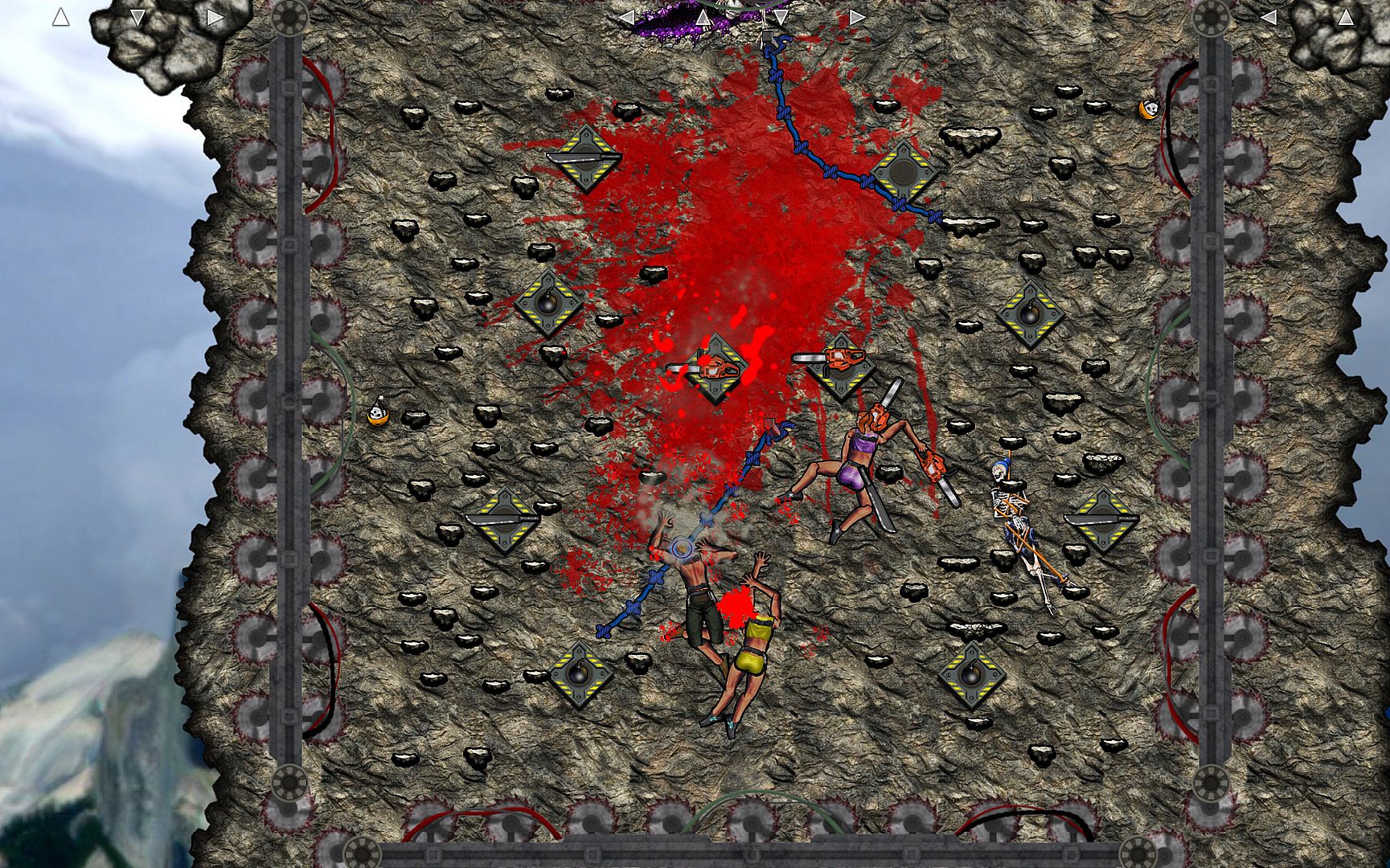 Climbers in CLIMB! will fight against dynamic environments and an array of outrageous weapons and gadgets in a mad scramble to the finish! Scale cliffs in various hazardous environments around the globe. Get to the top and brag to your friends, or fall to your death in a shower of ludicrous gibs. Are you good enough to scale the world's deadliest mountains?