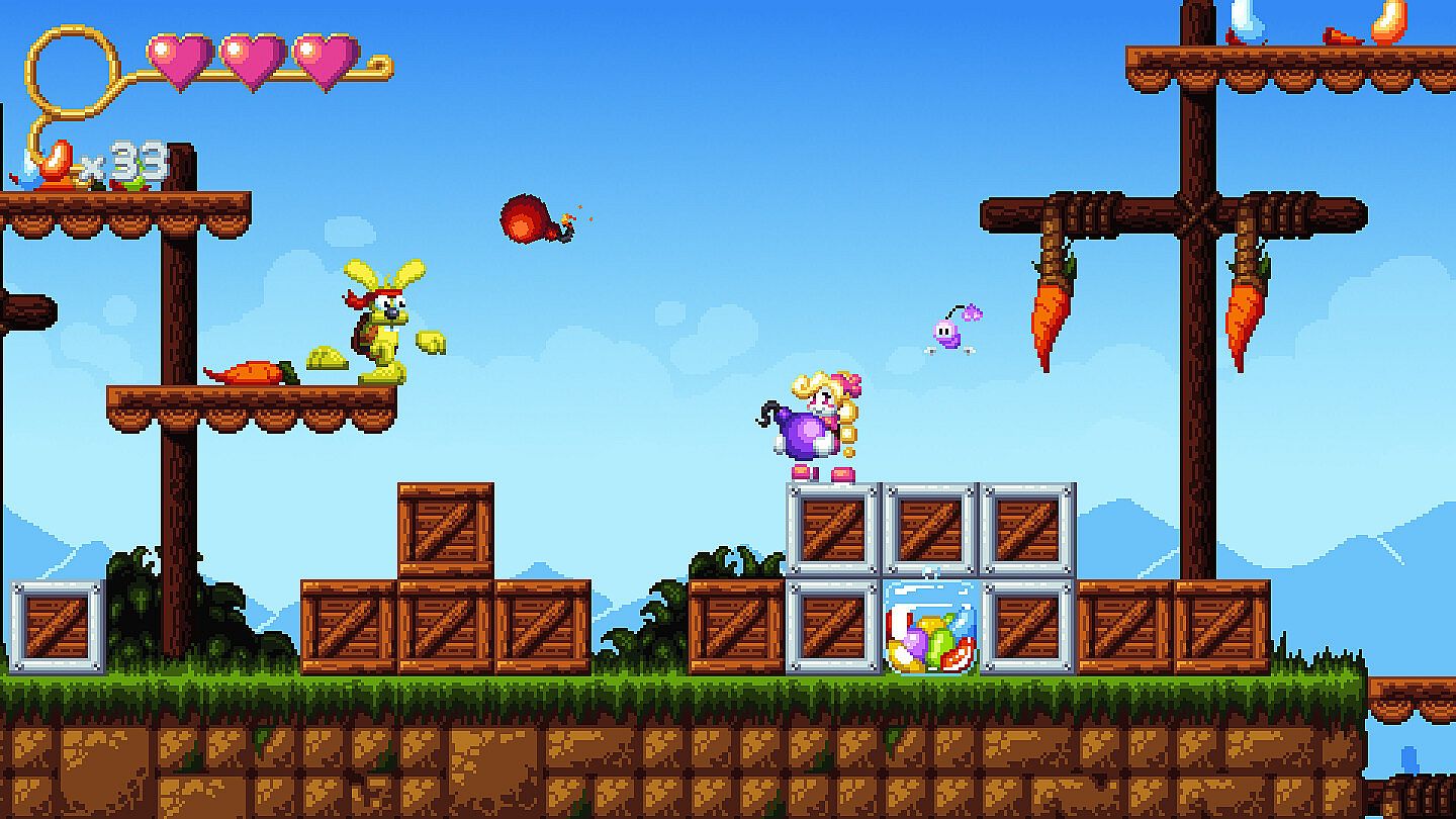 In this game you control our limbless hero Connie and her spirit friend Plum on their quest to defeat Lucilate, an evil overlord who has taken over the island of Cuisinia. Explore a whimsical world, free every imprisoned essence spirit, unlock new powers and beat up a bunch of terrifying foes!