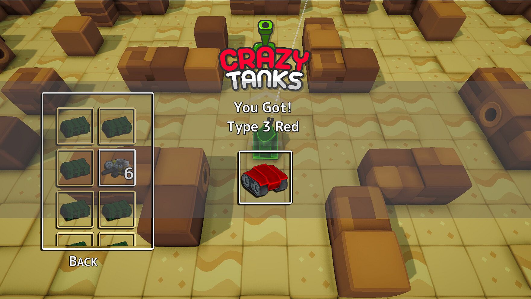 In Crazy Tanks Bullets Bounce of walls, maps have movable crates, and there are Heal and shield Power-Ups.