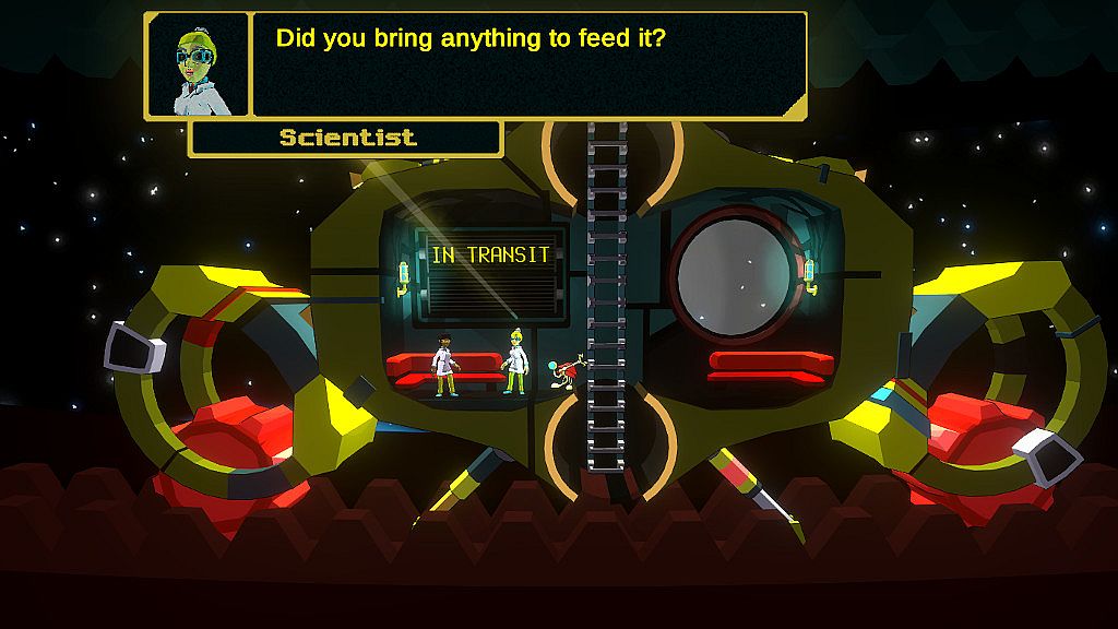 You improvise and create! Think on your feet to outsmart complex systems of traps. Will you disable the security camera or avoid it by melting through the floor with acid? Will you dodge the hulking robot or throw a chair to lure it into a pit? Stab the humans, hide from them, or carry them around as your special pets. There's always another solution to every challenge.GRABBY TOSSY CHAOS