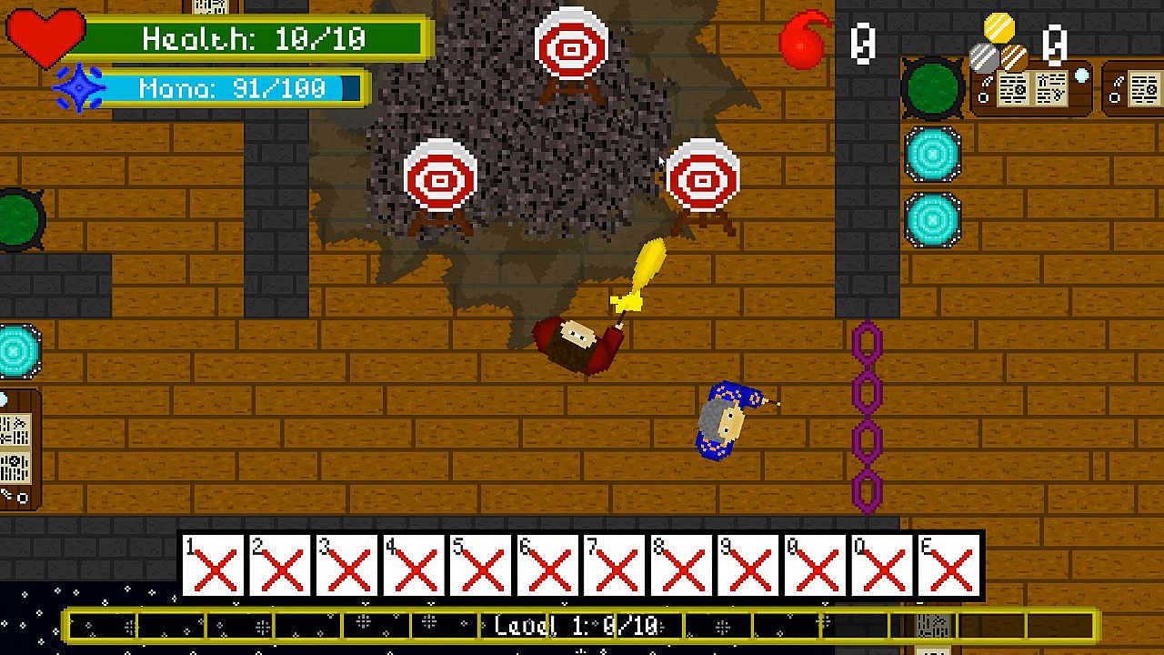 Your grand wizard mentor loses his legs, unleashing horrific monstrosities across the realms. As his new apprentice with scant spell knowledge, you traverse procedurally generated dungeons from a top-down view, blasting enemies to collect money and souls. Use drops to buy upgrades in a simple shop, level up for strength gains, and learn spells from six magic schools like Astromancy, Cryomancy, Mixomancy, Pyromancy, Necromancy, and Terramancy. Each of three random worlds ends with a boss demanding unique tactics, while a grumpy Grand Wizard offers aid despite blaming you for the chaos. Play around in blood puddles that leave trails as you push deeper for bigger rewards before death resets you. This indie RPG dungeon crawler suits fans of roguelite progression and magic experimentation on PC.