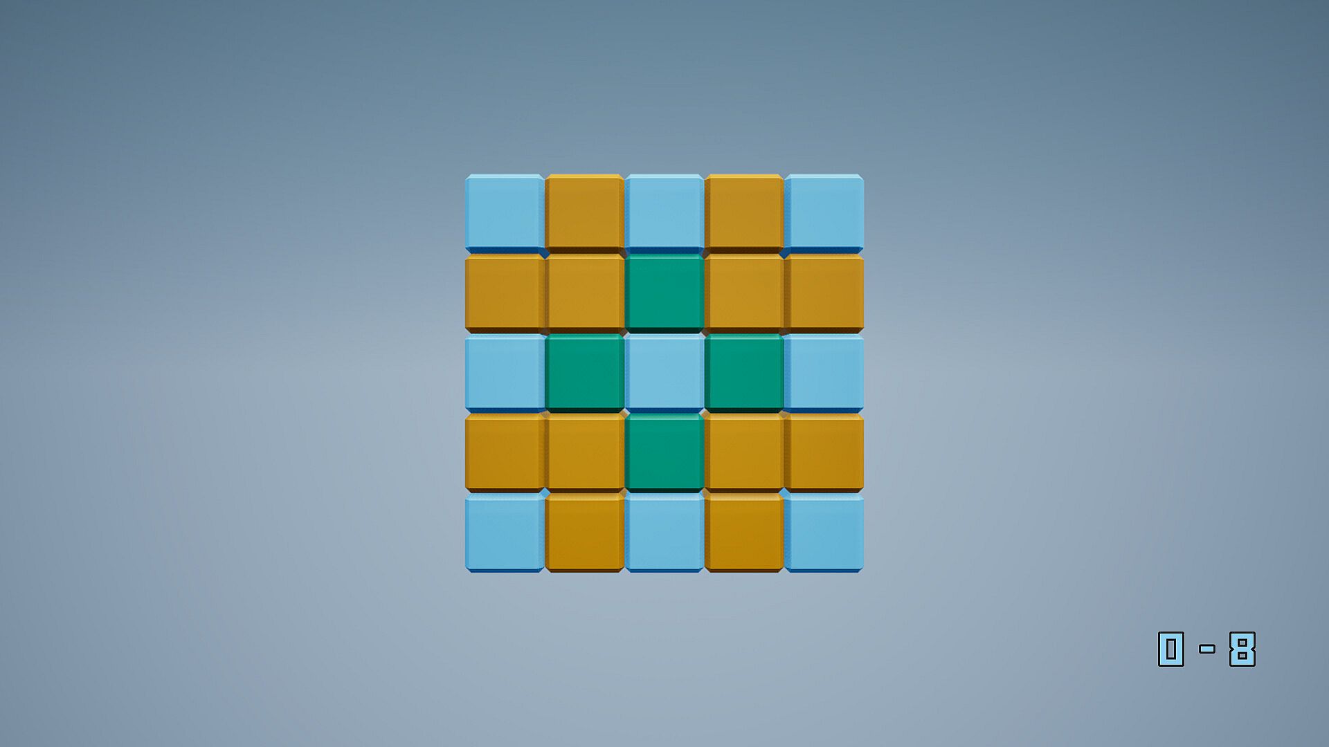CubeMatch is a 3D puzzle game where you match the color of every cube. Selecting a cube changes the color of itself and adjacent cubes. Any number of clicks will solve the puzzle and any color will work, but try to complete it within the maximum number of clicks shown for an extra achievement.