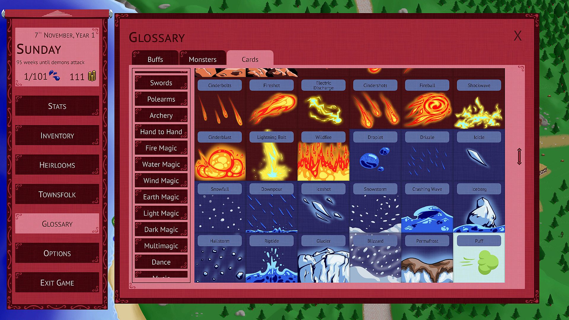 Dark Miasma is a time management game with visual novel storytelling and a deck-building twist. You only have a limited amount of time before the town of Galeport is overrun by demons, and it's up to you to decide how to best spend your time in order to become as powerful as possible, while earning the trust of the townsfolk.
