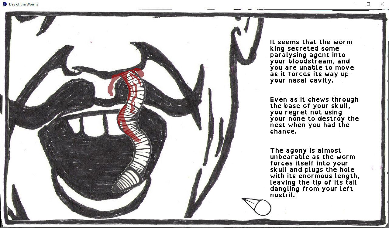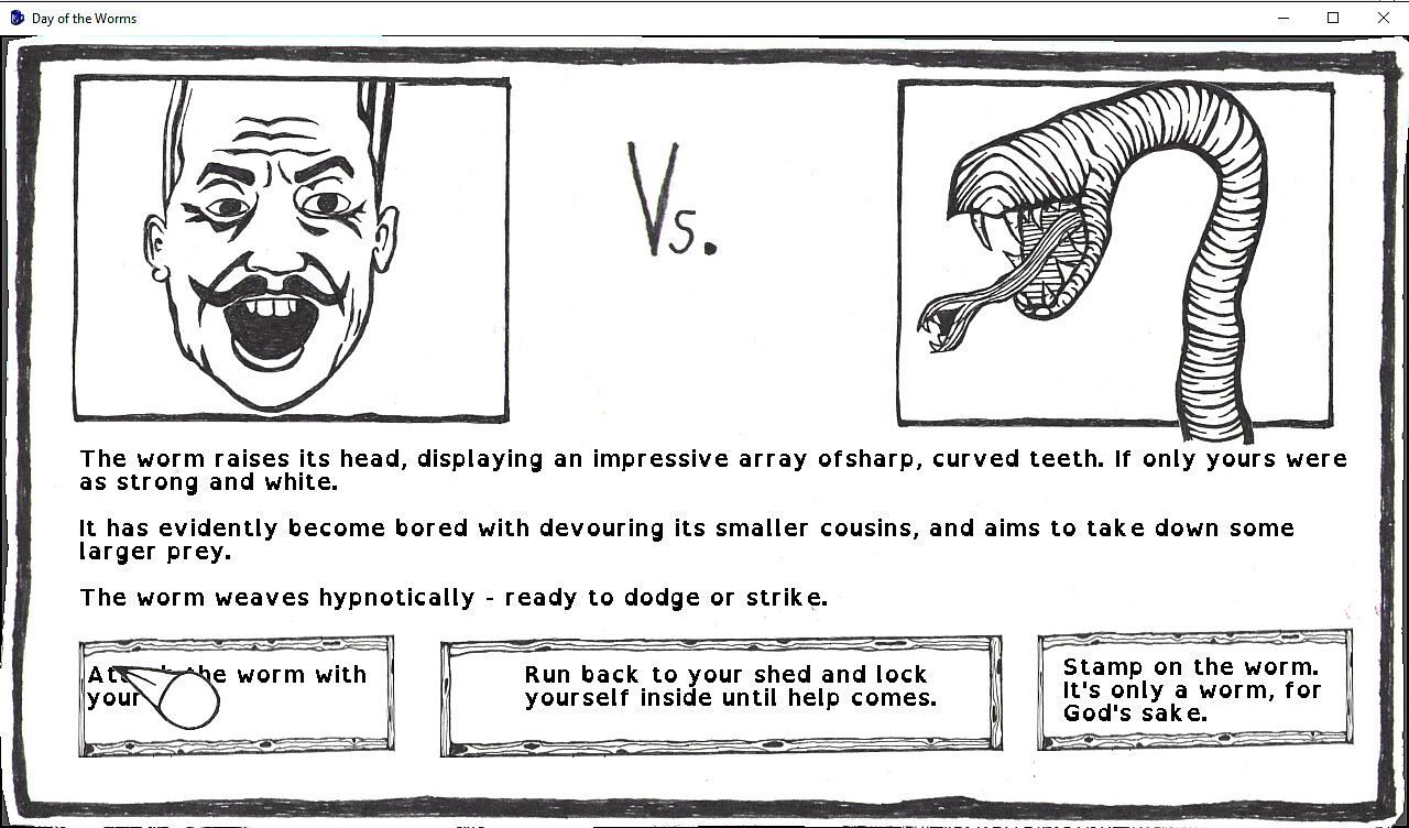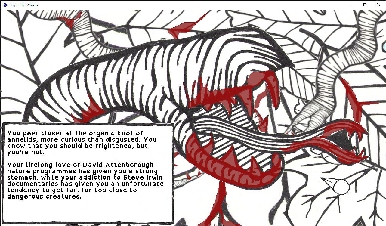 What starts as a day of part-time agricultural endeavour, quickly turns to terror in this hand-drawn, point-and-click adventure with interactive fiction elements. Common worms have mutated into carnivorous killers, bent on transforming Britain into a land of zombies. Even worse, you can't find your digestive biscuits!