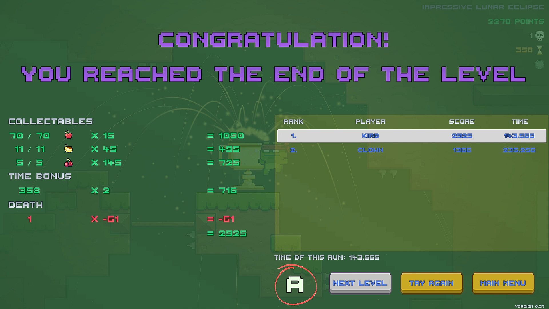 Delicious Fruitworld is a classic Jump 'n' Run in which the objective is to complete each level with as many points as possible. The points are increased by collecting the fruits that appear in the levels, decreased by deaths and the remaining time is added as bonus points.
