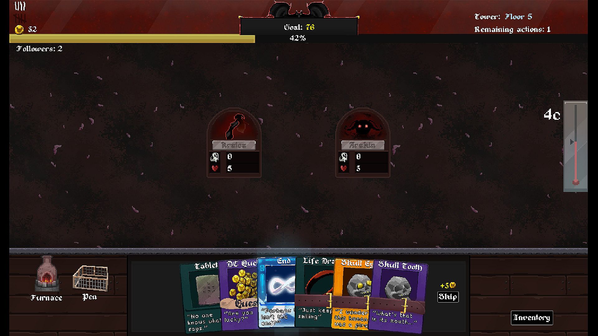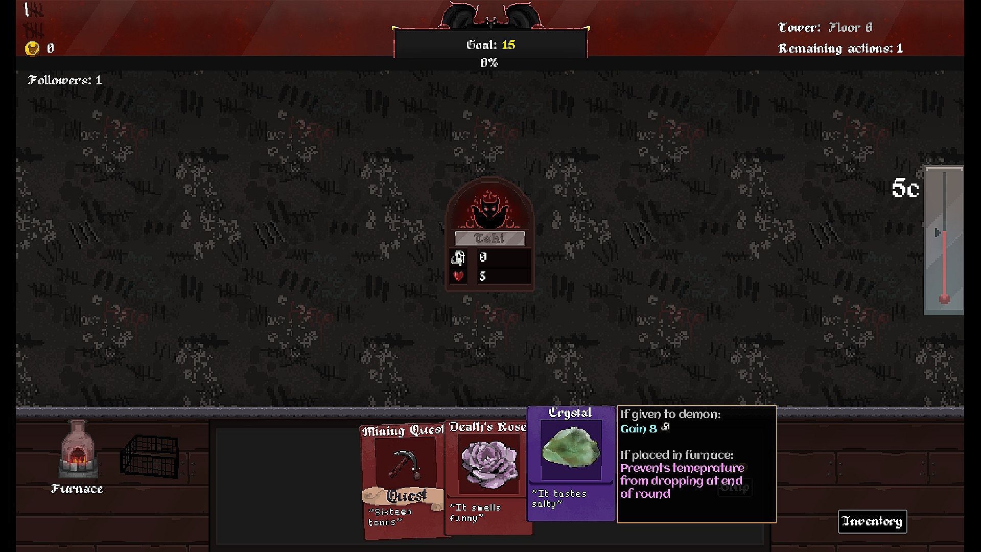 Demon Cycle is a casual strategy game, where luck favors the prepared. You have limited turns to make enough coins to pass the floor. Your choices will determine the outcome.