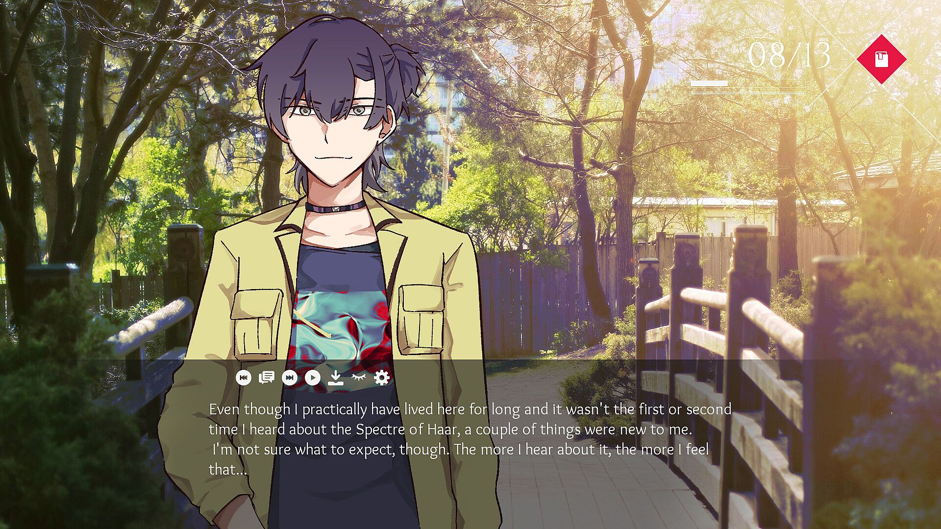 desope is a visual novel style, text adventure game. To keep progressing the story, player will control the main character by selecting choices and collecting clues scattered in the town through searching and conversing with other townsfolk.