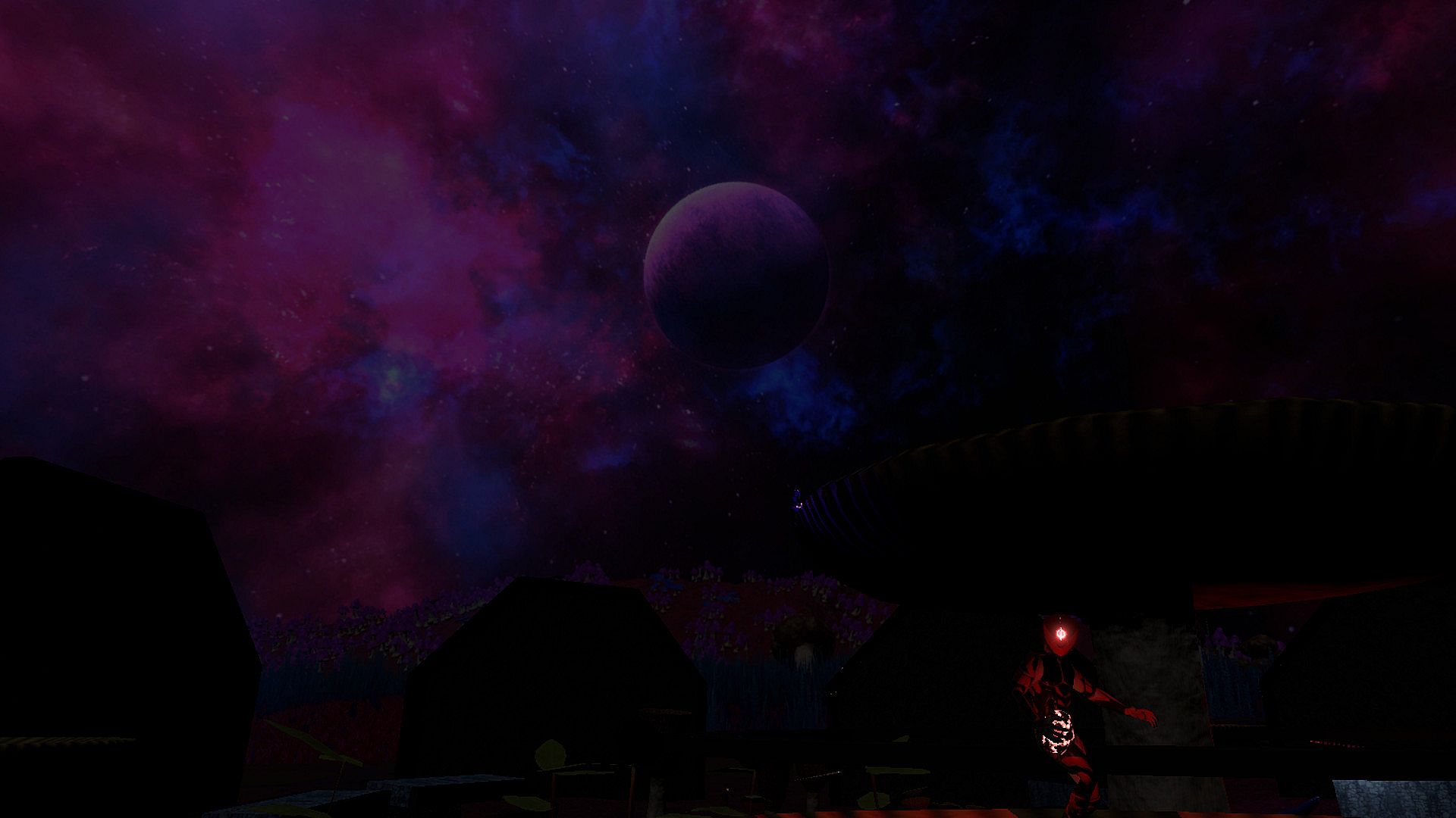 Shroom Garden an interesting planet spotted with giant mushrooms and other plant life. Teleport to the top of the mother shroom in the center to gaze upon the beautiful purple alien sky with its bright blue star and colored fog. Then jump down below and use the smaller fungi as organic cover in battle.