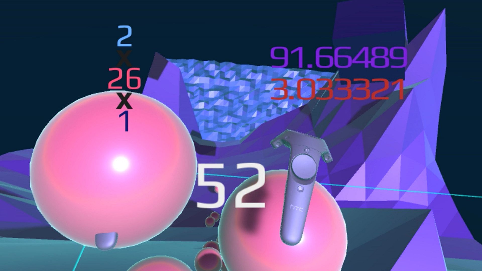 This area has arcade machines you can use to access new areas. Right now you can go to SUNSETあの日 and Tunnel Force Vortex (TFV). The sunset is a place to relax for a while. The clouds slowly change and there are some things to explore and see. TFV is an arcade-style game where you try and get a full combo while swinging your arm to move your player smoothly around the inside of a tunnel. The visuals become more intense as you get multiplier power-ups. It's made to be played with the included music or your own playlists using separate headphones.
