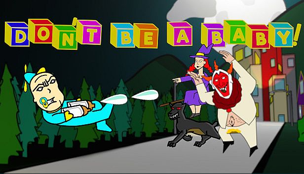 Don't Be A Baby! is a humorous and action-packed side-scrolling run and gun game with a twist: instead of changing other objects, the player's bottle weapon shoots in different patterns! With a hilarious narrative, players take on the role of Max Murphy, a baby who has finally had enough of his neglectful mother and decides to venture out into the world on his own. As he navigates through the city's nightlife, Max must use his wits and his trusty bottle weapon to defend himself against a variety of colorful enemies, including drunken partygoers, strippers, and other unsavory characters.