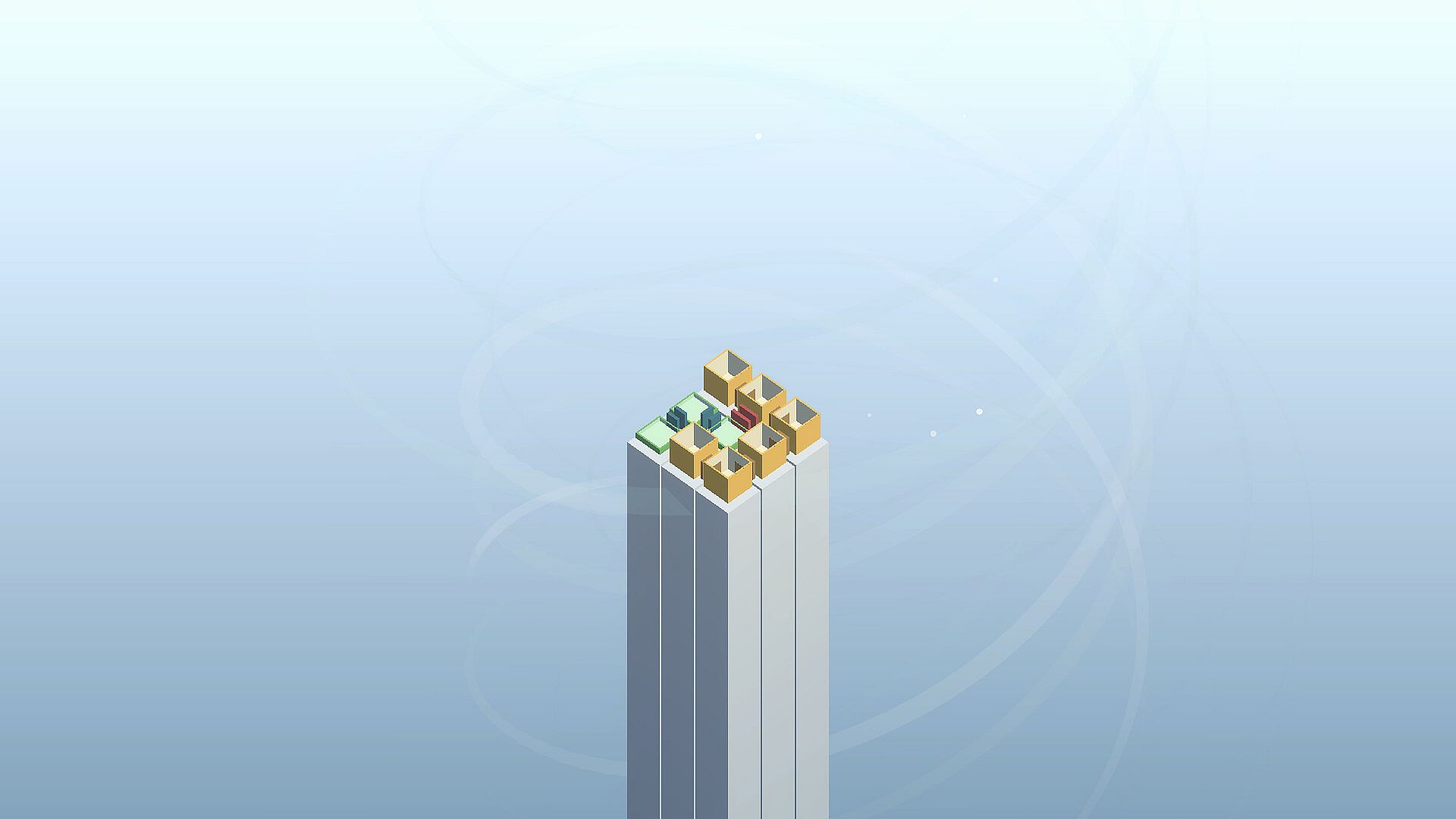 A stage-based puzzle game with a top-down & isometric view, centered around the concepts of rooms and doors.