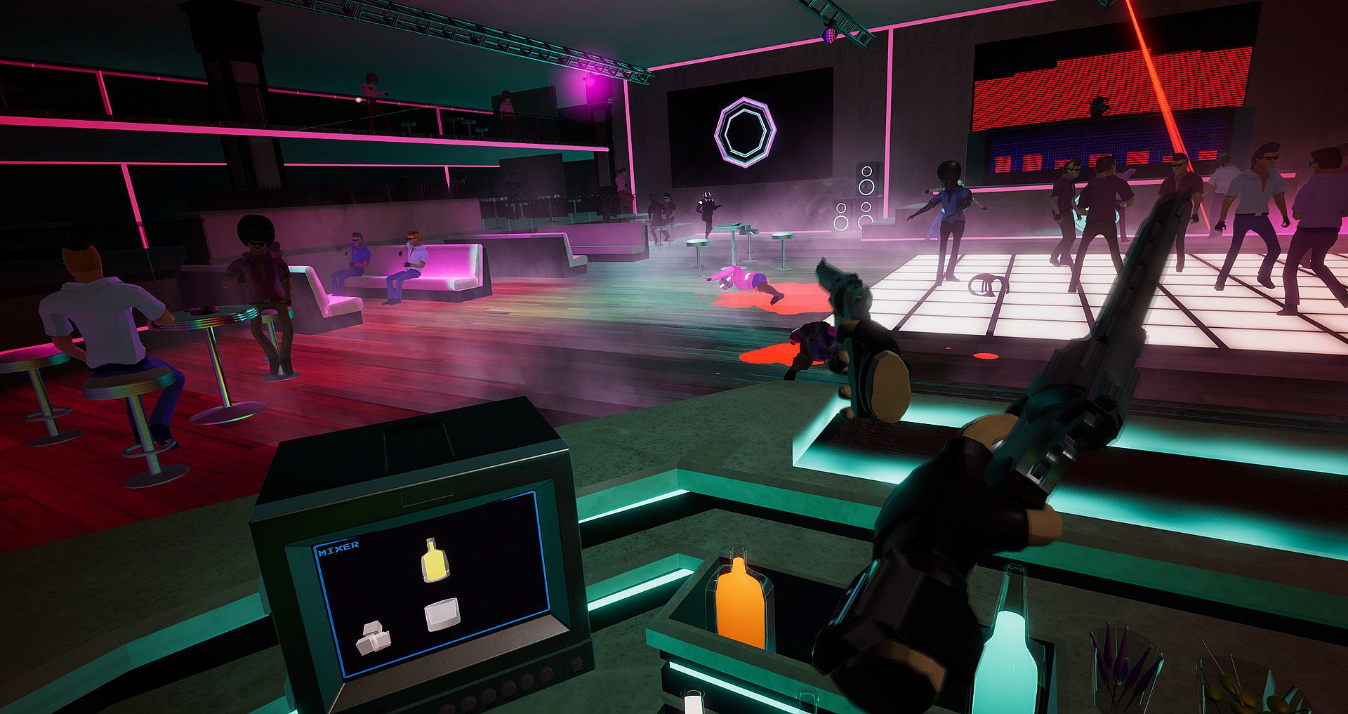 Throw yourself back into an alternative 80’s, where gangs rule the streets but the party must go on. As a hard-as-nails bartender, it’s your job to keep the drinks flowing and the bad guys off your turf. You have been entrusted with B.A.R.R - the latest and greatest in sentient drink preparation technology, and it's up to you to keep it out of the hands of those who would use it for far more nefarious purposes. Luckily, B.A.R.R is also equipped with the latest in anti-theft technology - you.