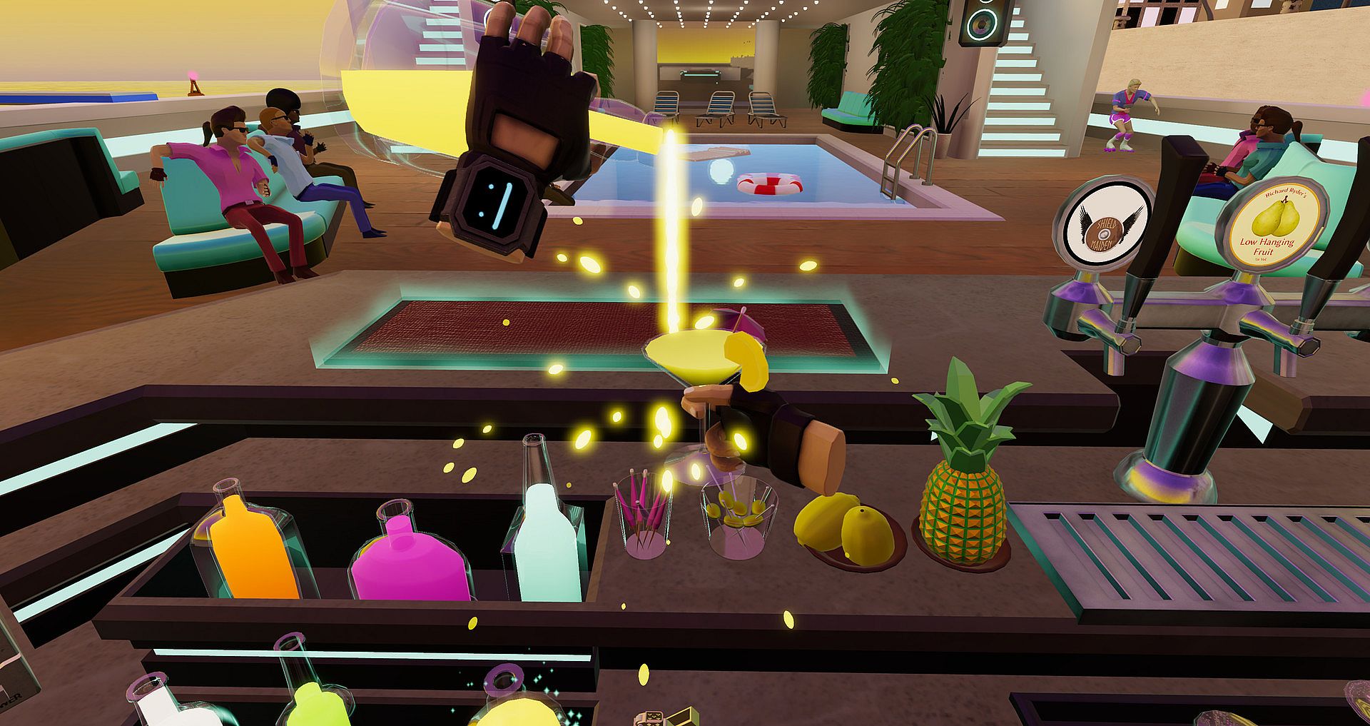- Masterful bartending action