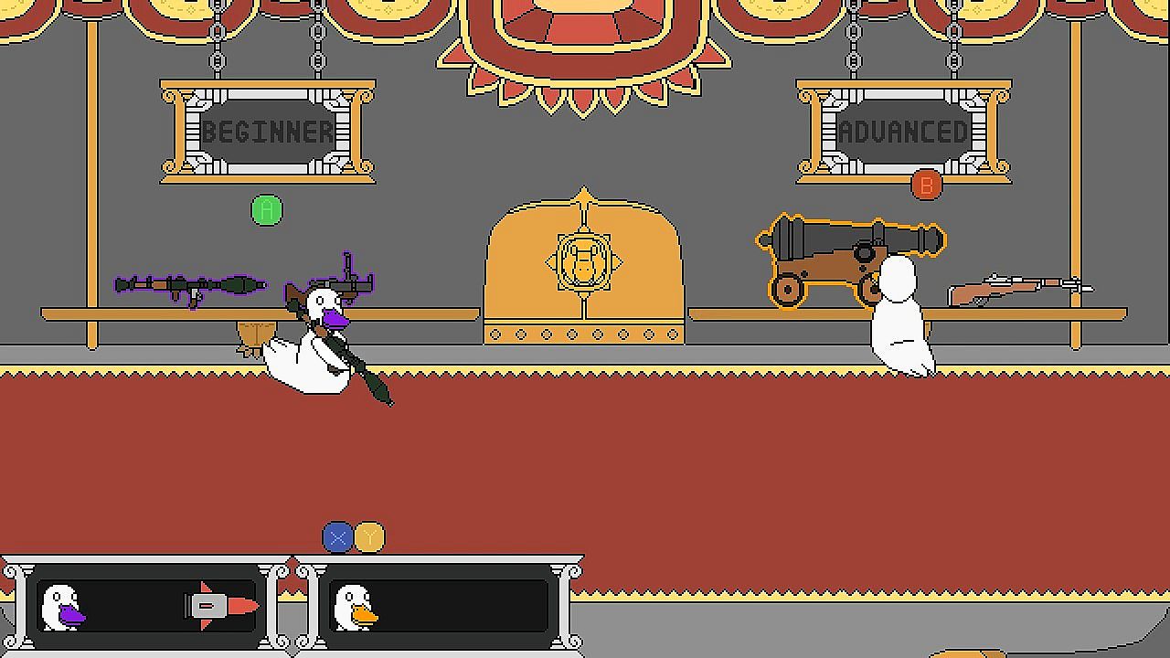 Fight your friends as ducks and geese with explosive weaponry in this frantic top-down, local multiplayer shooter as a crowd of royal birds overlooks your bloodshed. After selecting your weaponry of choice, enter an arena and avoid a humiliating death by keeping the goose in the arena at bay. The goose's desperate shots rain down in an attempt to rid the goose of its status, retain the health it has left, and force a draining curse upon his victim. Destroy your opponent using Rocket Launchers, Explosive Snipers, Grenade Launchers, and Cannons. Will you return as Duck or Goose?
