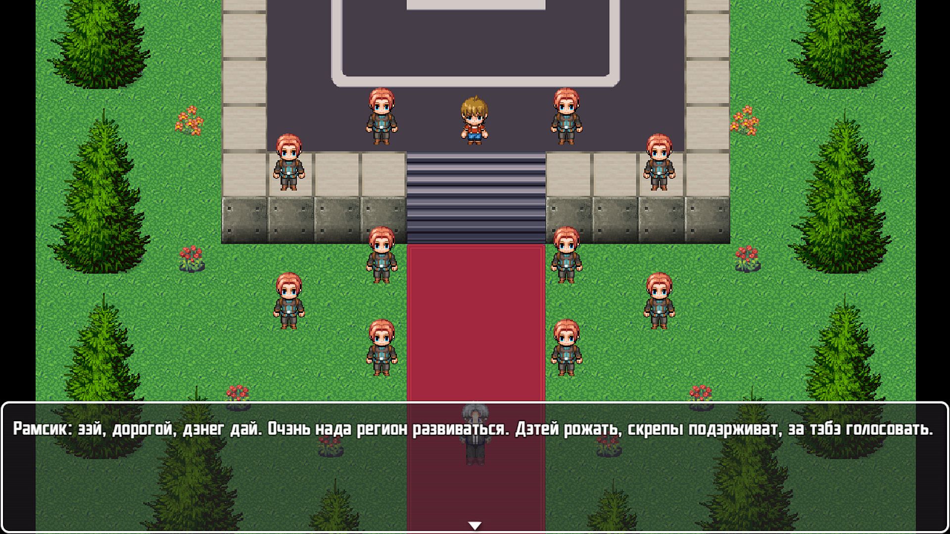 "DVOREC" is a story-driven RPG. Its actions take place in the largest, most expensive and famous building in the country and in the vast territories adjacent to it. The main character is Sanya - an ordinary guy who accidentally got into the epicenter of political life and now the fate of people, nations and entire states depends on his decisions. "DVOREC" is a vibrant satirical RPG game. Classic combat turn-based mode, like in JRPG. Beautiful characters with humor, a lot of dialogues and stories.